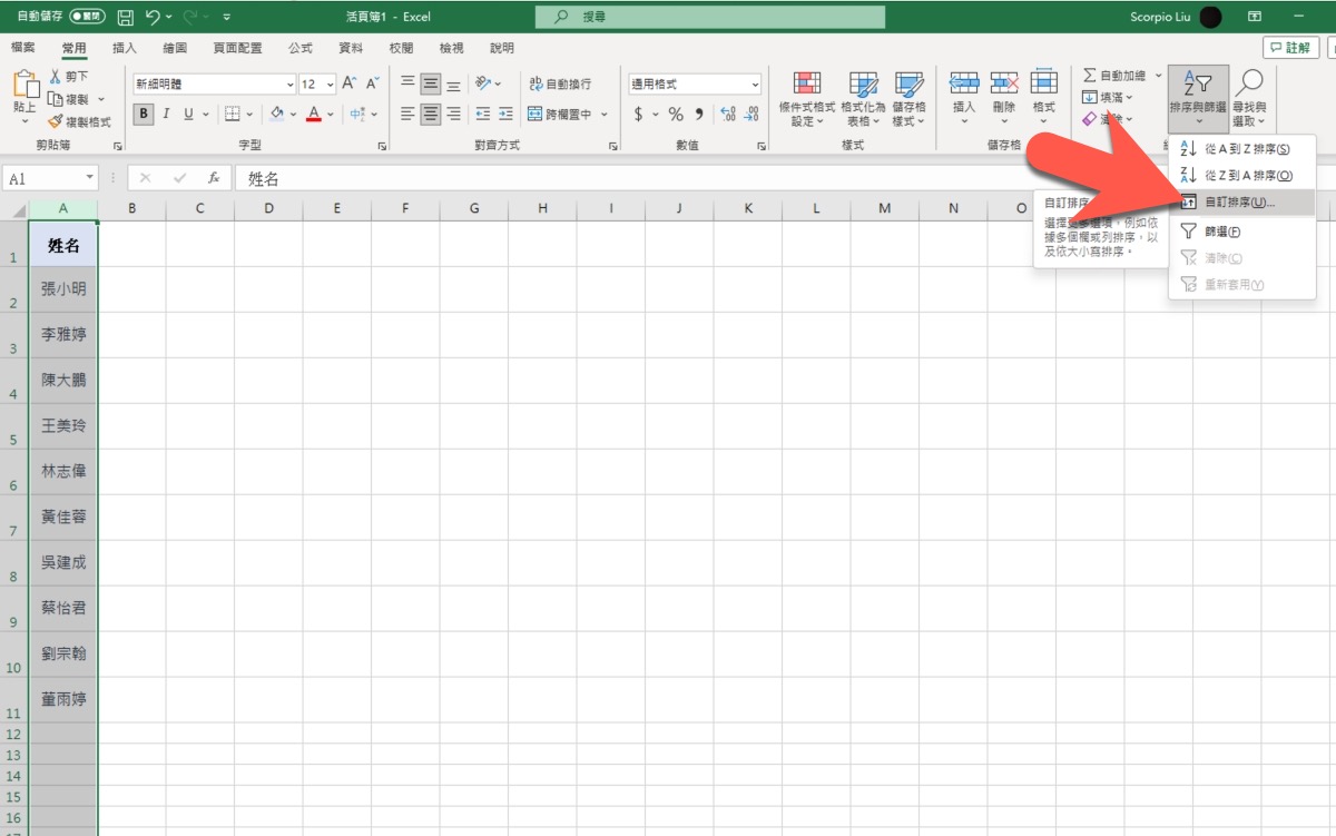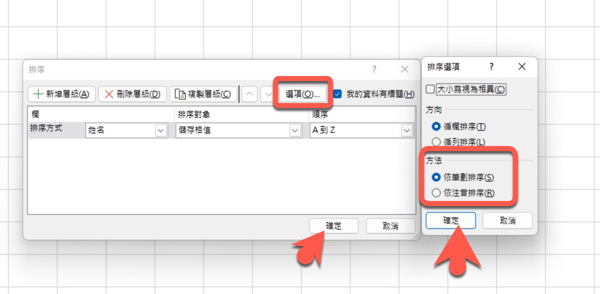 首頁 › 電腦小教室 › Excel 教學 - 如何讓姓名按照筆劃或注音排序? Excel 教學 - 如何讓姓名按照筆劃或注音排序? 發佈日期:2023/8/15 作者:阿湯 分類:電腦小教室 最近大概 Excel 教得多,來問問題的人也變多了,今天來解答一個蠻小的問題,也就是當他在排列姓名時,要怎麼將「中文」按照筆劃或注音來排列順序,畢竟英文名字大家都會,只要按排序功能的 A to Z 或反過來排都可以,那中文要怎麼處理呢?其實方法差不多,往下就來教大家如何光速解決這個問題吧。 Excel 教學 - 讓姓名按照筆劃或注音排序 首先,選取姓名那一列內容後,在常用最右邊有個「排序與篩選」,再進入「自訂排序」,相信很多人都沒有點進去看過吧。 接下來什麼都不用動,點擊「選項」,然後方法的部份就可以自由選擇是要按筆劃排序或是按注音排序囉,按下確定後就搞定。 來看一下排序,資料確實就按照了筆劃排序囉,不過 Excel 也是很神奇,能夠按照筆劃排序,不過沒有計劃筆劃數量的函數或功能,稍稍可惜啊,但還是有一些小技巧可以來計算筆劃,下次再來教大家吧。
