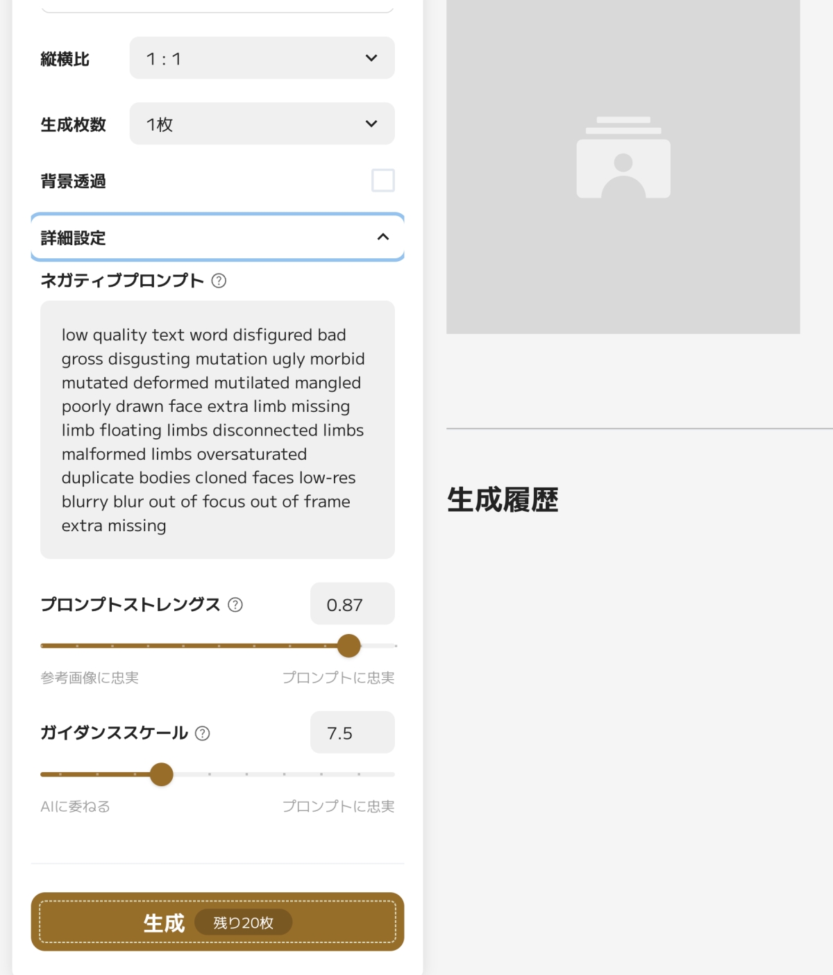 選擇圖片比例,一次生成多少圖片,透明化背景,品質等。