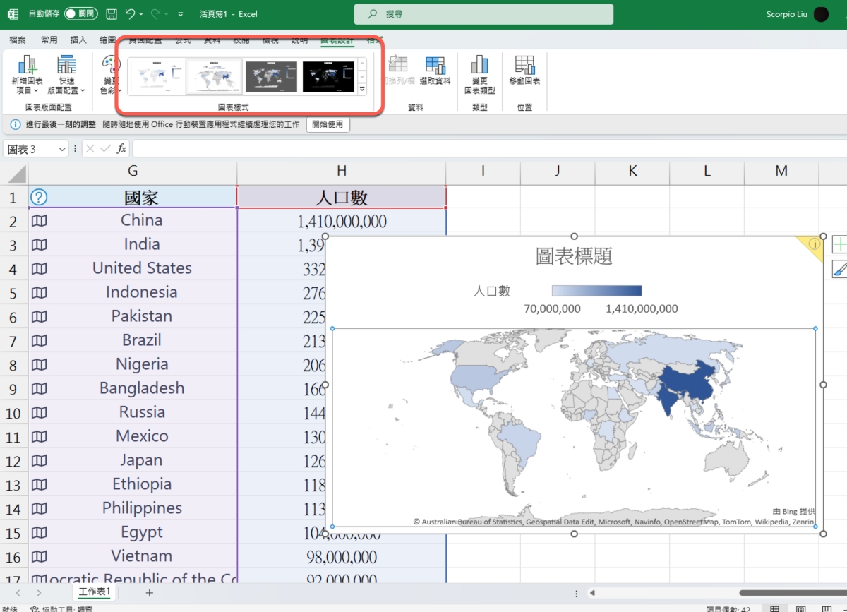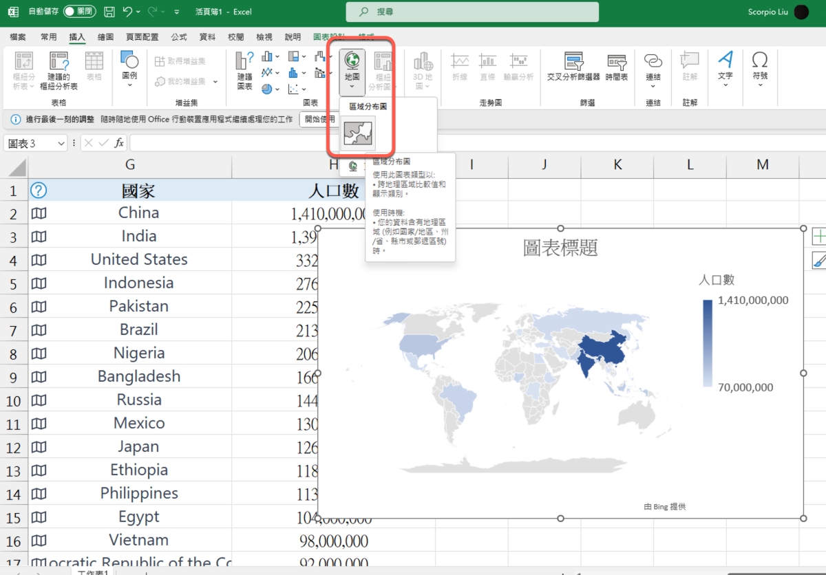 Excel 教學 - 如何製作出世界地圖的分佈圖表