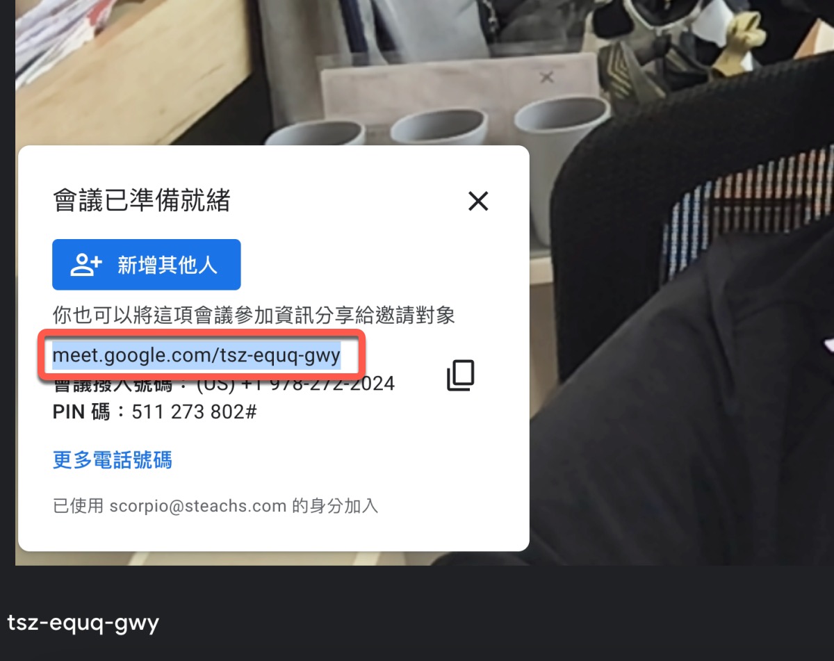 加入方法很簡單,當你建議 Google Meet 會議時會有一串會議連結,將他複製下來(Teams 也一樣做法)。