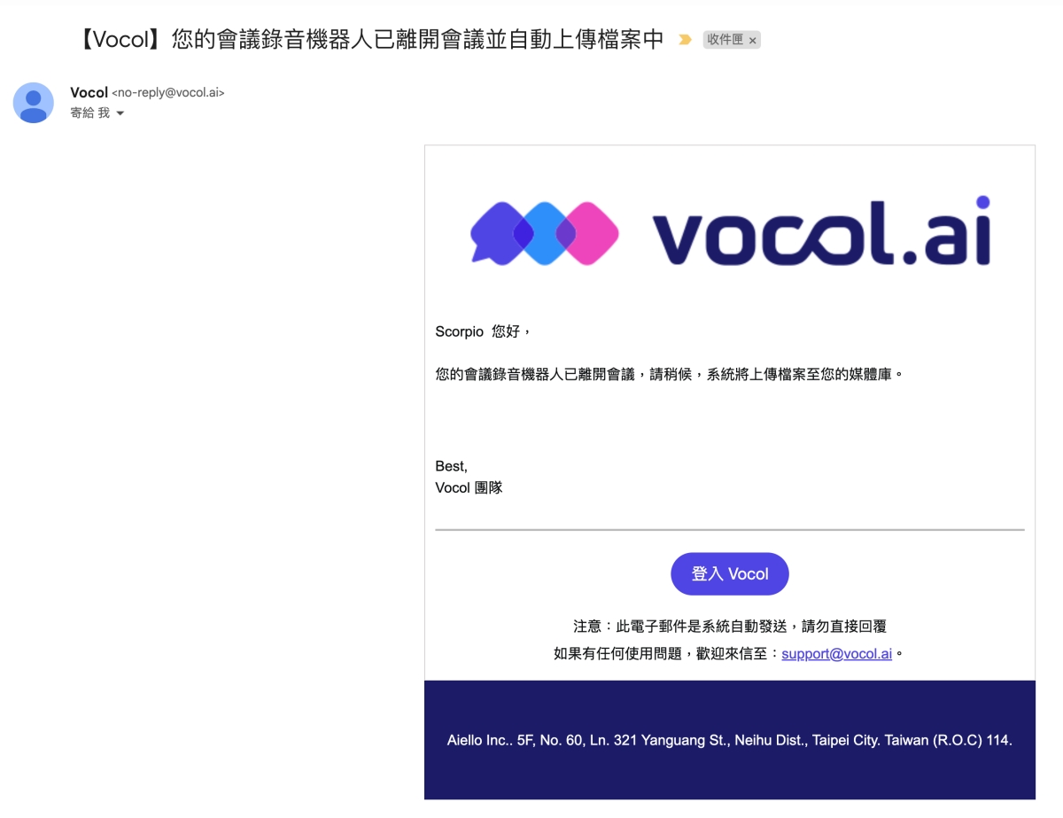 另外也會透過 Email 通知你,讓你第一時間就可以知道已經完成,馬上就可以進一步的去執行下一步要做的事(比如拿逐字稿去運用在更多地方)。