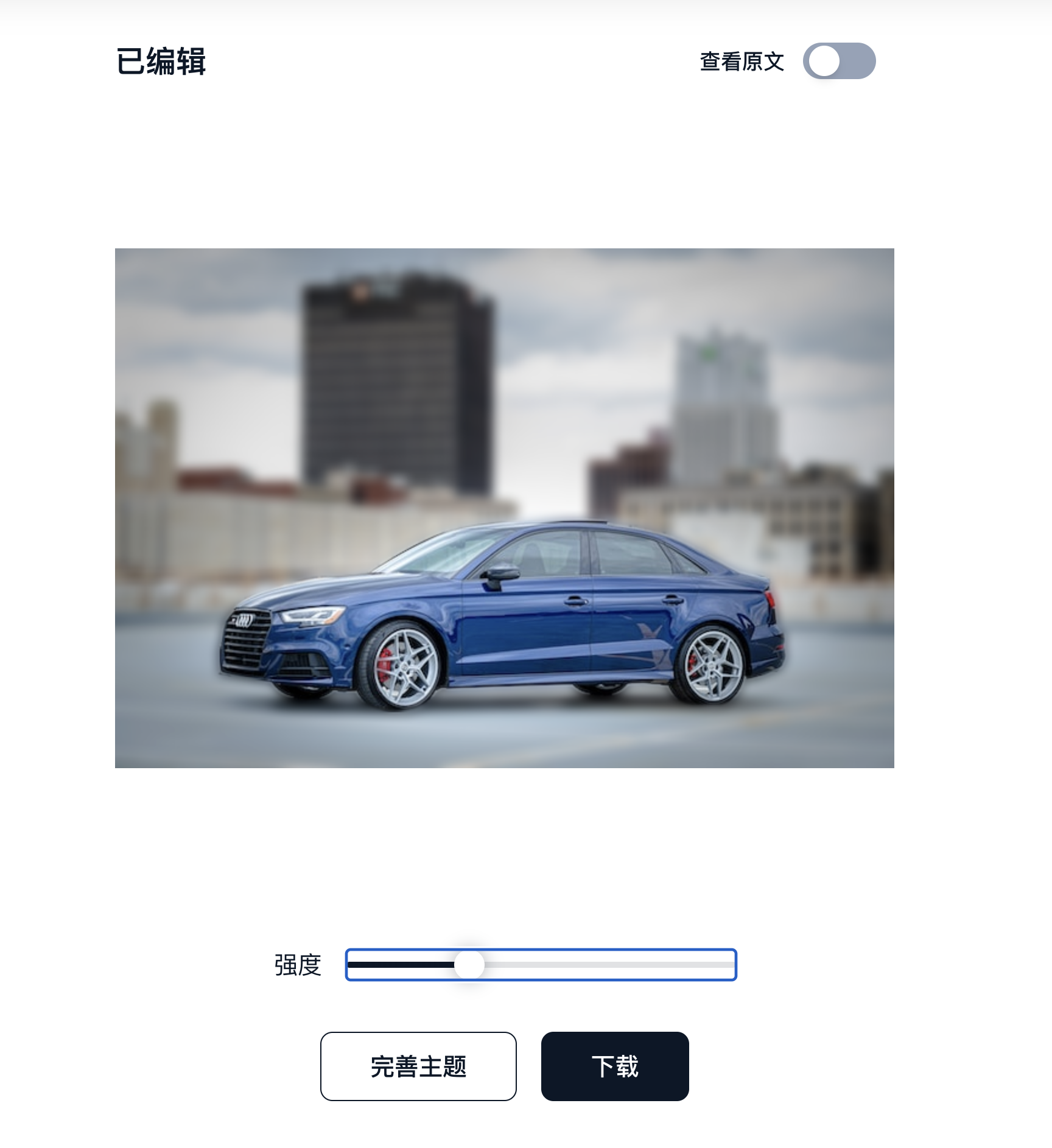 然後大概等個幾秒就會出現完成的照片,不過預設的強度都有點太過頭,你也可以點擊右上角的查看原文,比對一下原本的照片長怎樣。