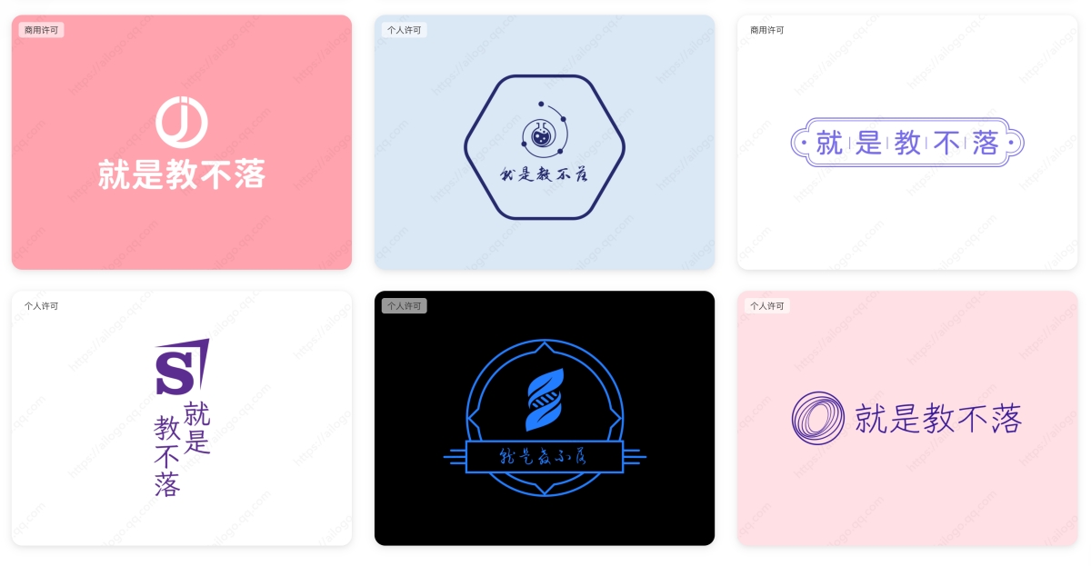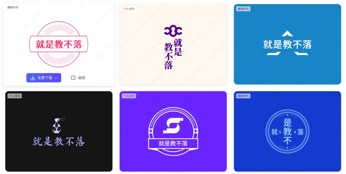 登入成功後就可以重新按一次產生,接下來就可以一直往下無限制的生成 Logo,大部份都蠻有質感的,相當不錯啊,每張圖的左上角也都有標示是個人用還是商用。