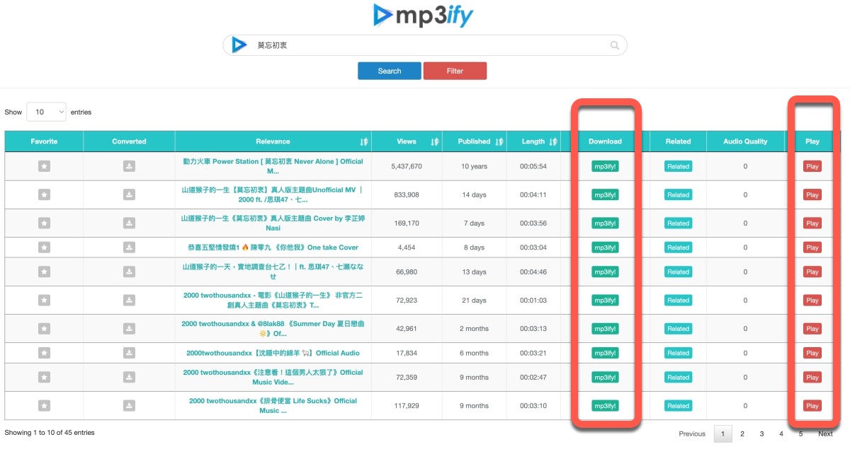 網站:https://www.mp3ify.com/進入網站後,直接就可以在搜尋框找想要的音樂,直接輸歌曲名稱搜尋,而且這網站沒有廣告。