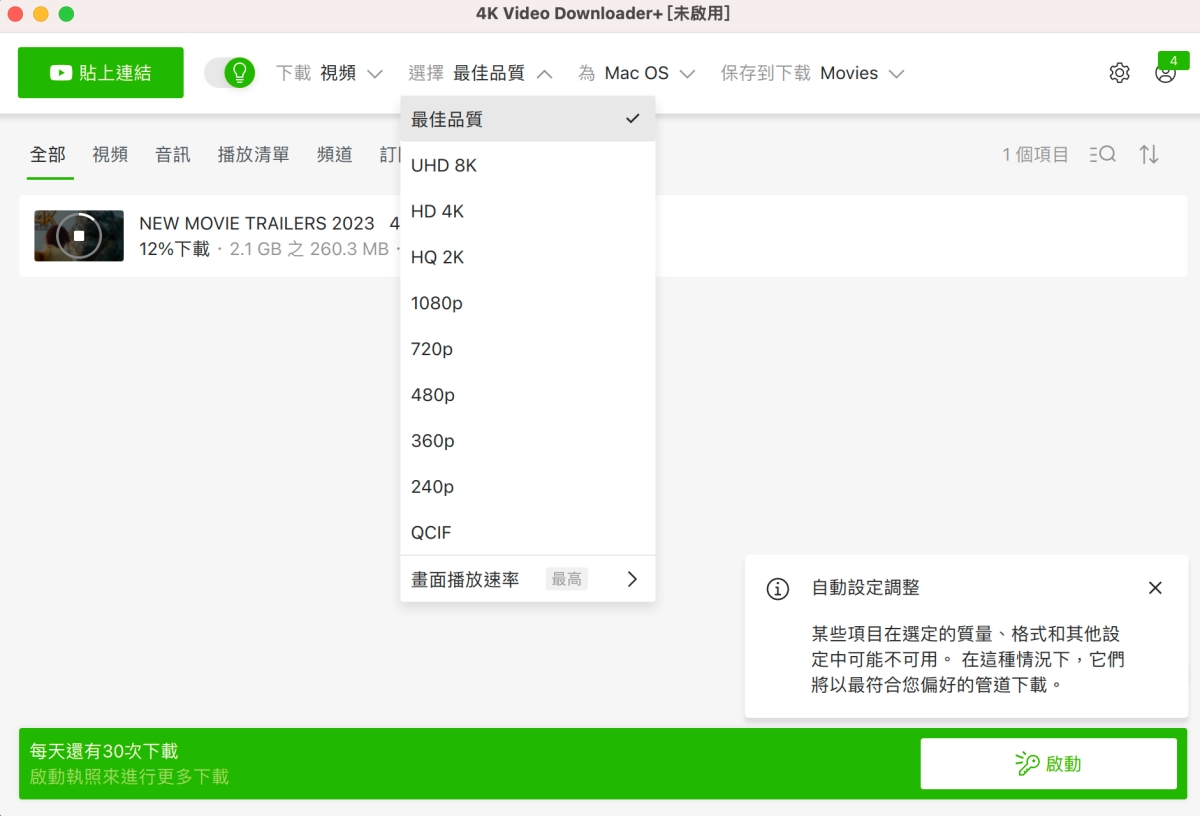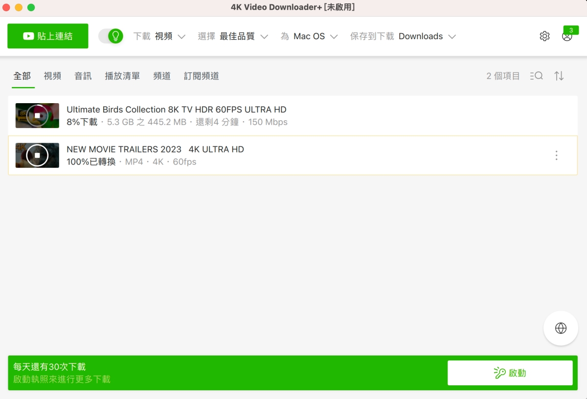 後續試了 8K 影片也沒問題,基本上 4K Video Downloader+ 真的是簡單暴力好用,而且每天可以有 30 次下載的額度,基本上就是免費啦,大家用力的用吧。