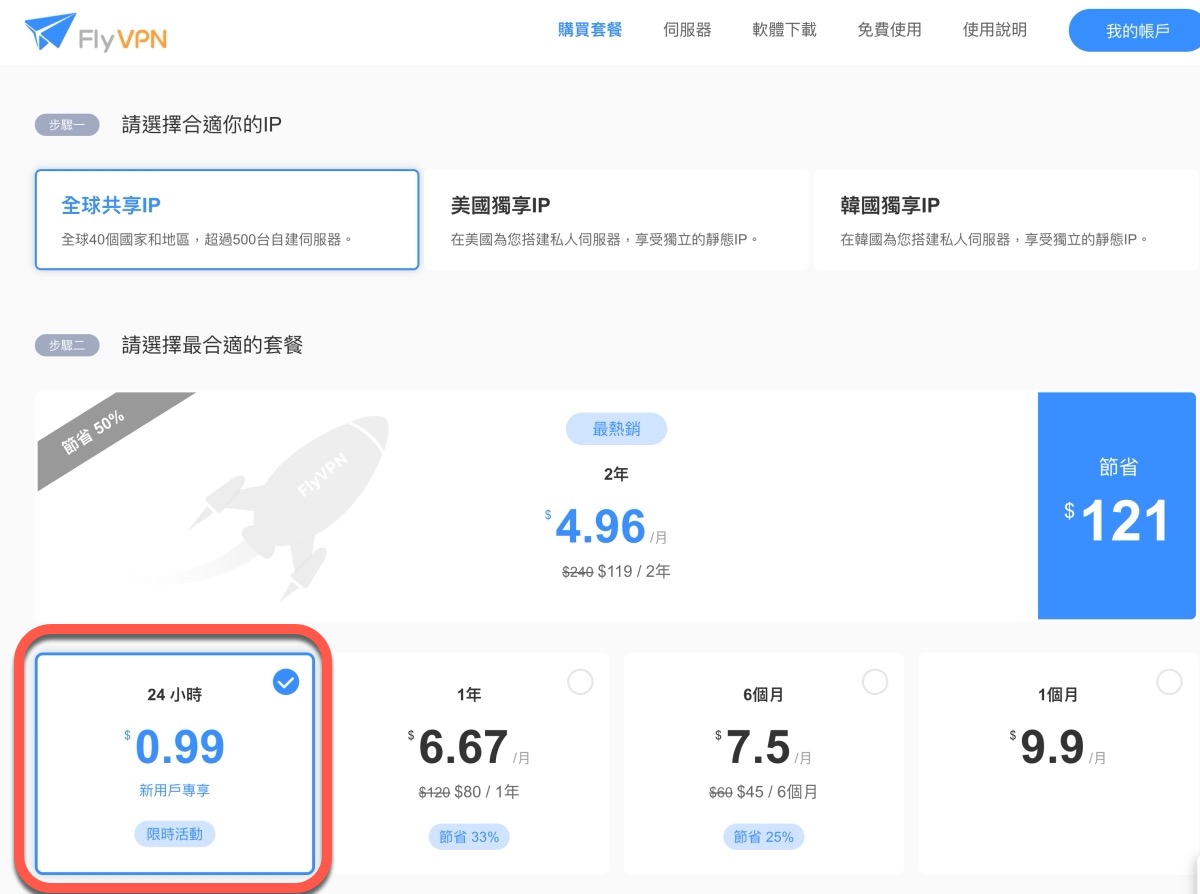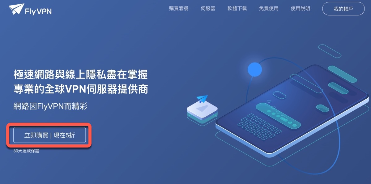 網站:https://www.flyvpn.com/tw/進入網站後直接點擊立即購買或上面的購買套餐都可以。