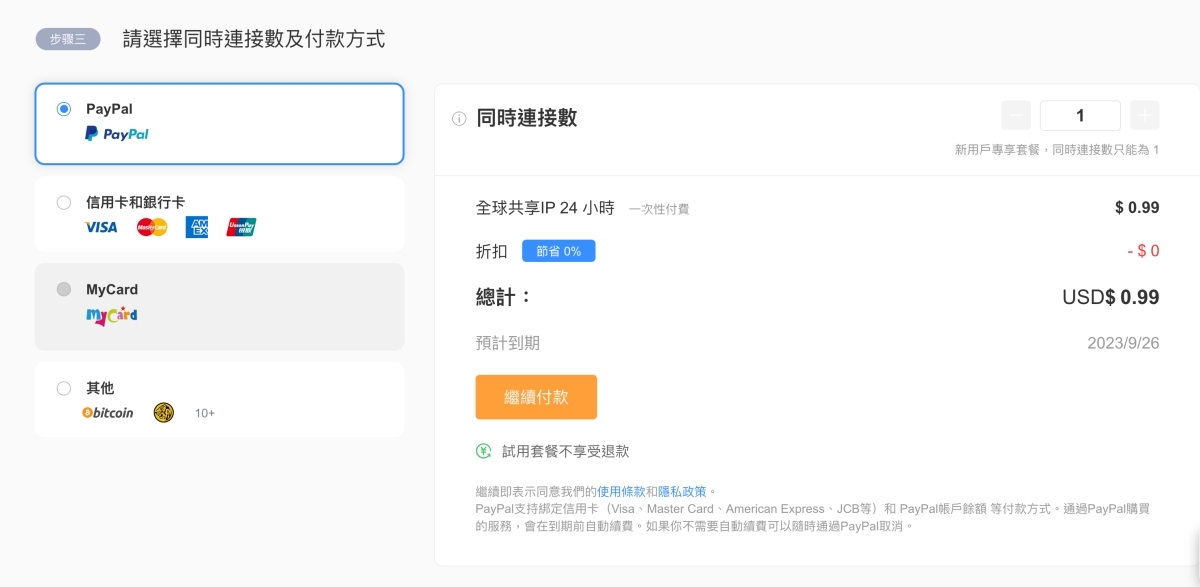 只要你沒註冊過(其實就換個 Email 就好),就能購買 24 小時方案,大約台幣 30 左右。