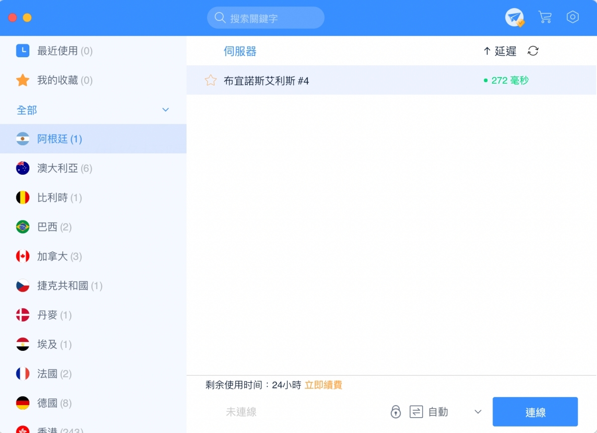 其實 Fly VPN 也有免費方案可以用,只是支援的比較少,速度比較慢,不過如果只是用來註冊一些服務還是很夠用的。