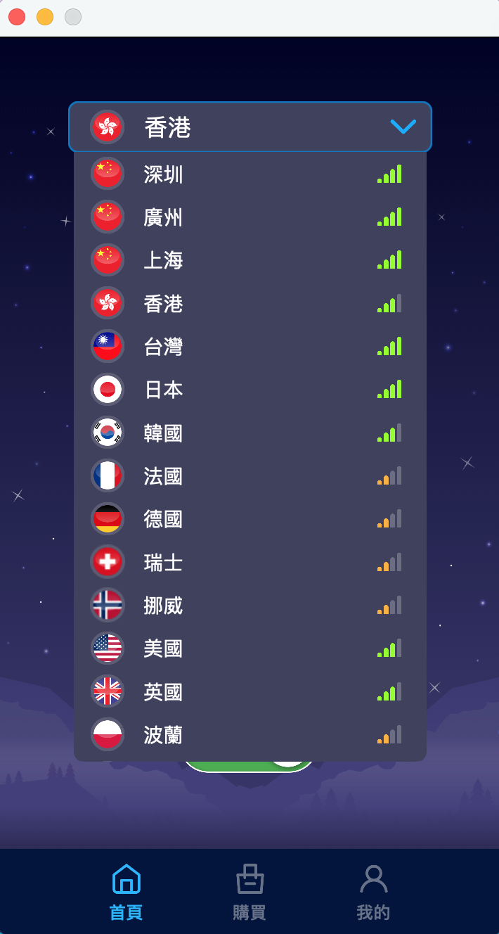 安裝完後,介面使用很簡單,只有選地區跟連線。