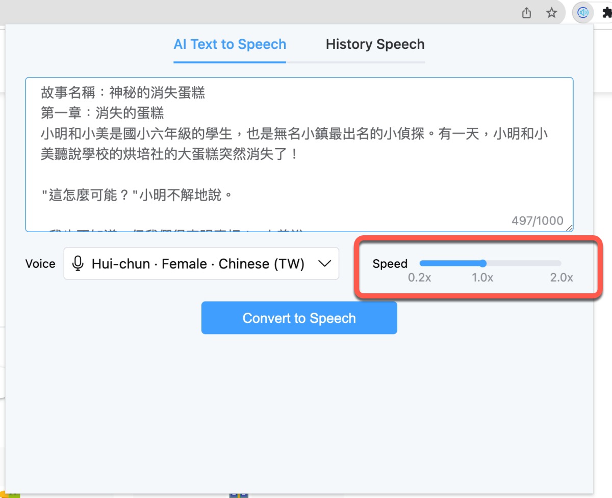 設定好後再選擇朗讀的語速,就可以送出產生音檔。