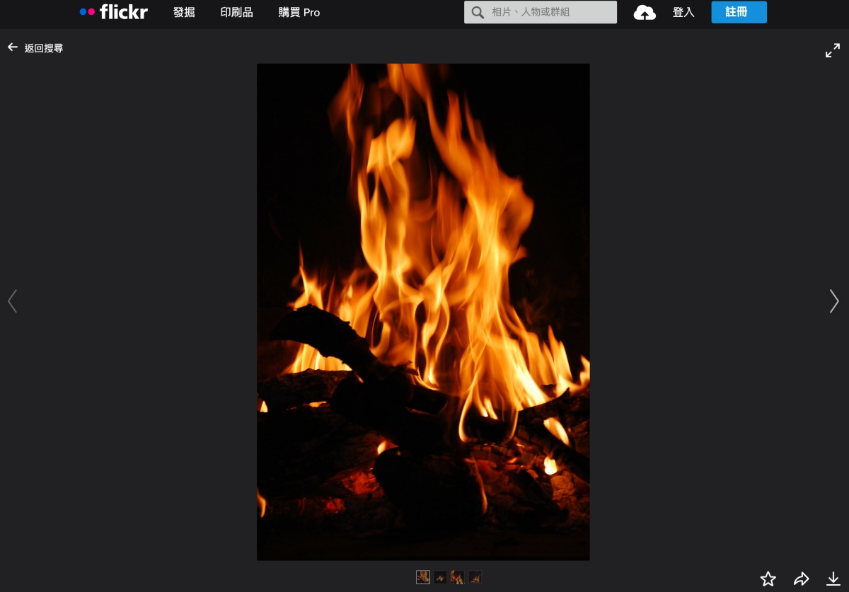 以 Flickr 為例,搜尋後會直接跳到 Flickr,直接這裡點擊想要的圖片下載及查看相關資訊。