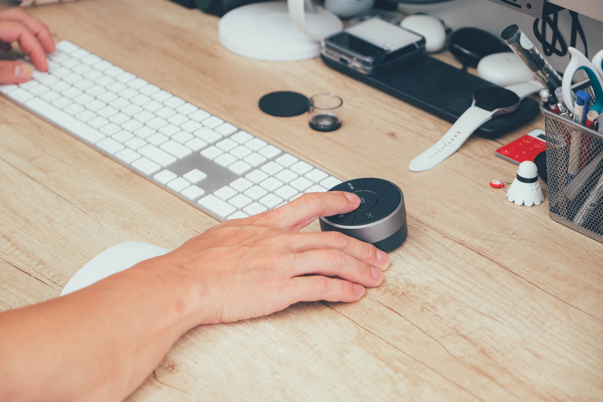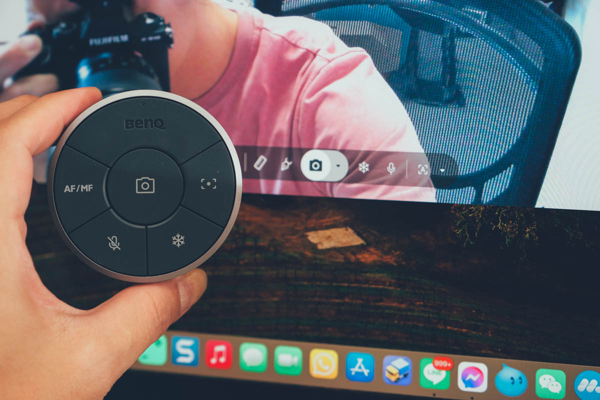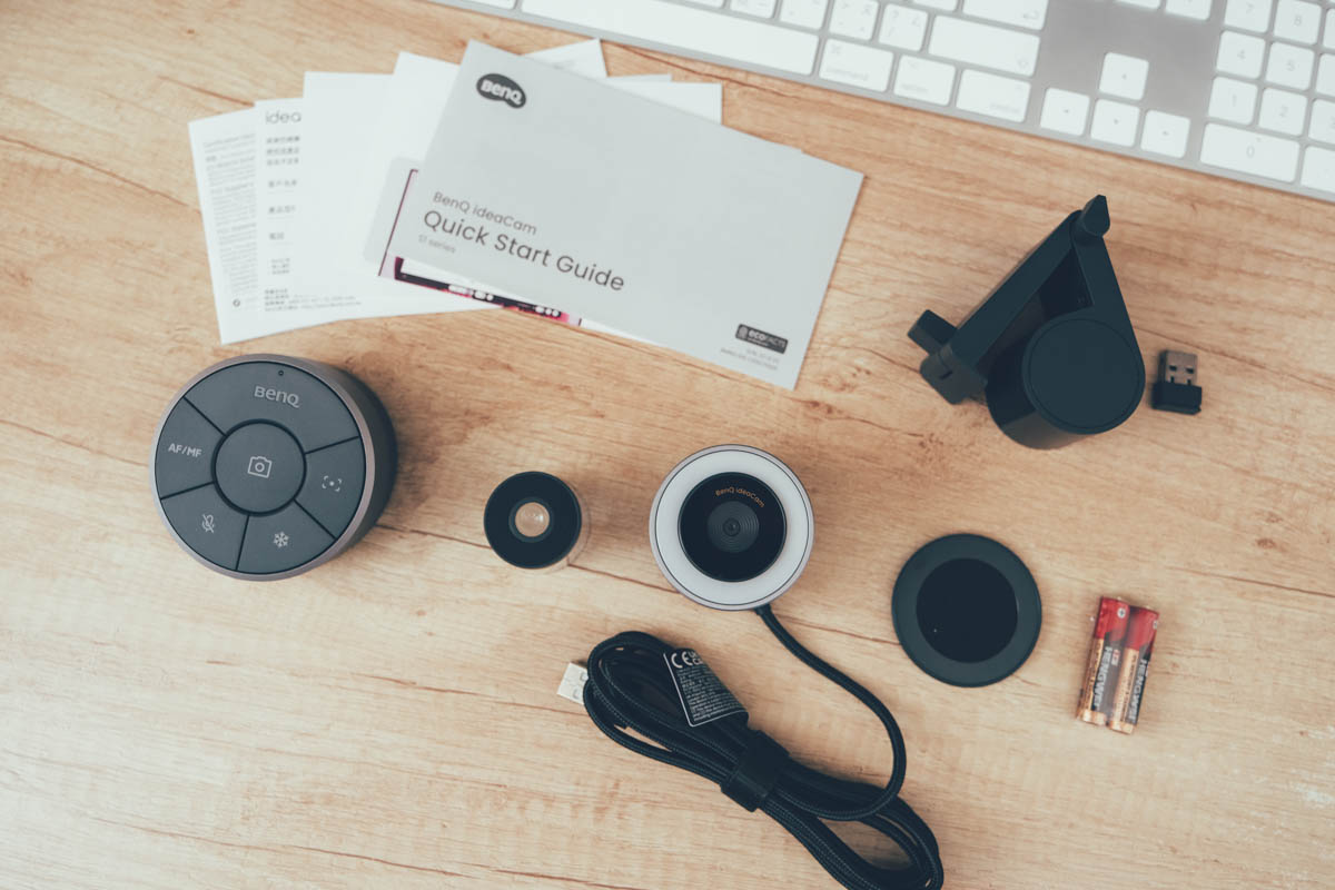 最高規格的 ideaCam S1 Pro 額外再提供了一組無線遙控器,這時應該有人會問,為什麼視訊鏡頭需要無線遙控器?平常沒用在視訊時,如同 ideaCam 的名稱「專業拍物視訊鏡頭」,也可以單純用來錄製物品的拍攝,搭配 BenQ 提供的軟體「EnSpire」,其中軟體的主要操作按鍵,就可以直接對應這個無線遙控器,包括自動/手動對焦、麥克風靜音控制、凍結畫面、智慧快速對焦,這讓我們在操作時、可以減少手部因為滑鼠移動的問題,可以直接點擊對應的按鍵來操作。