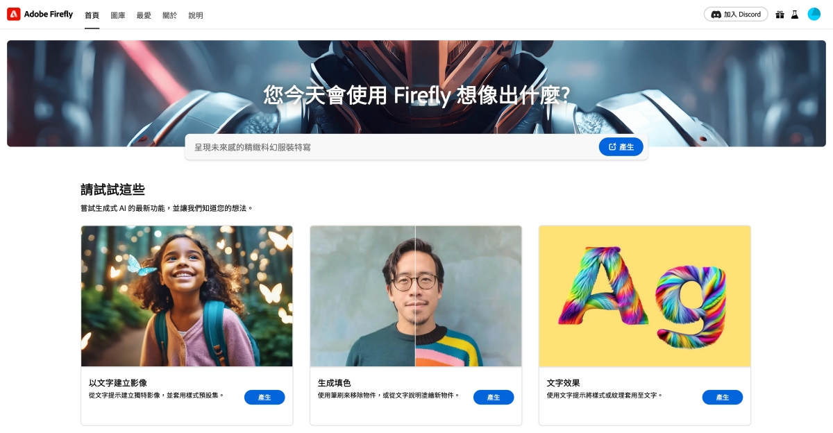 網站:https://firefly.adobe.com/進入網站後,在中間的輸入框可以直接輸入需求,愈詳細愈好。