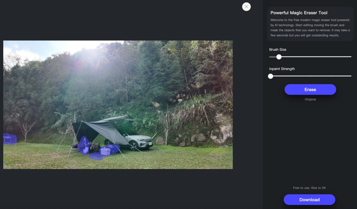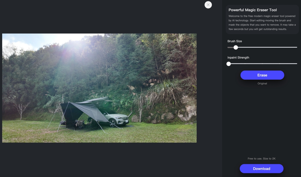 這樣就完成囉,是不是看不太出來修了什麼,如果不對比前後照片的話,最後再點擊右下角的 Download 就可以了,最高可以下載為 2K 解析度的照片哦,沒廣告真的佛心來著。