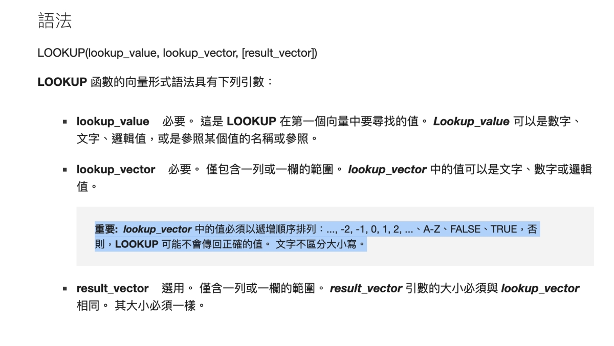 Excel 教學 - LOOKUP 函數注意事項