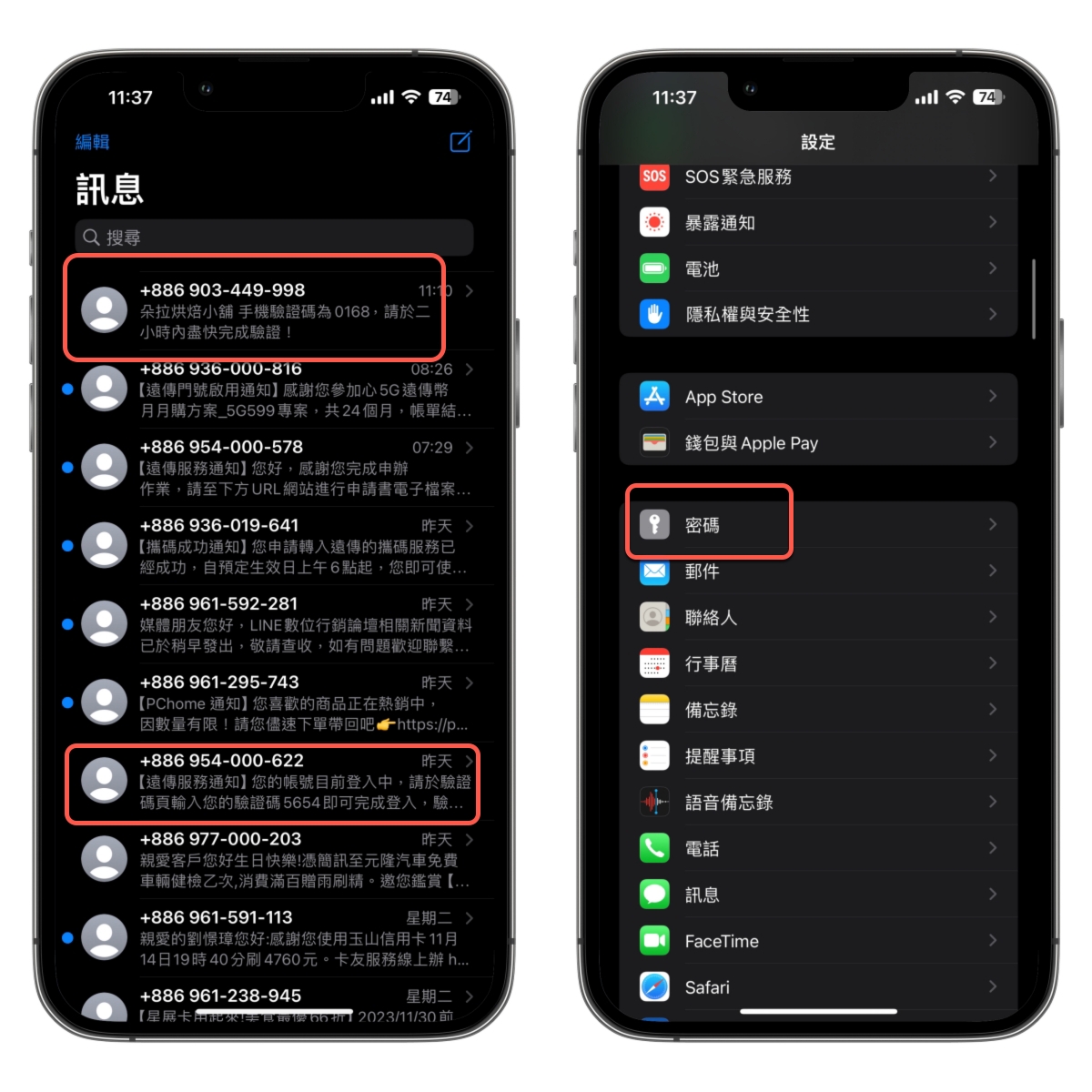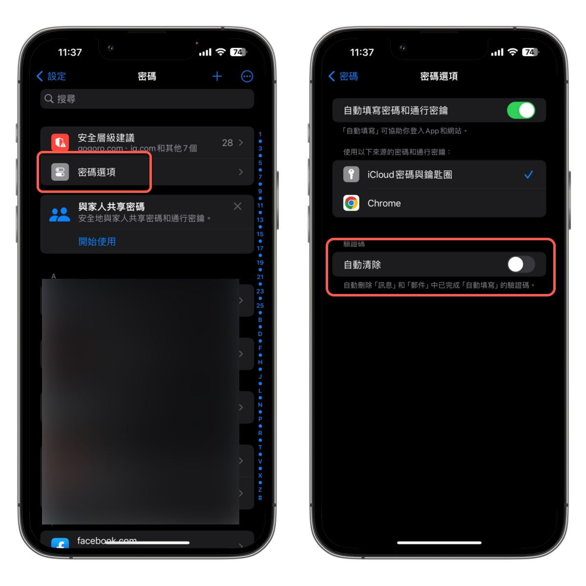 平常我們收到的簡訊或信件驗證碼,一整年下來應該都會累積不少,而這些平常你也很懶的去手動刪除,這時你可以開啟自動清除,就不用手動來做這件事,在設定 > 密碼。