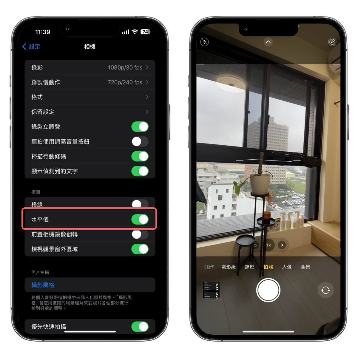 開啟相機水平儀功能