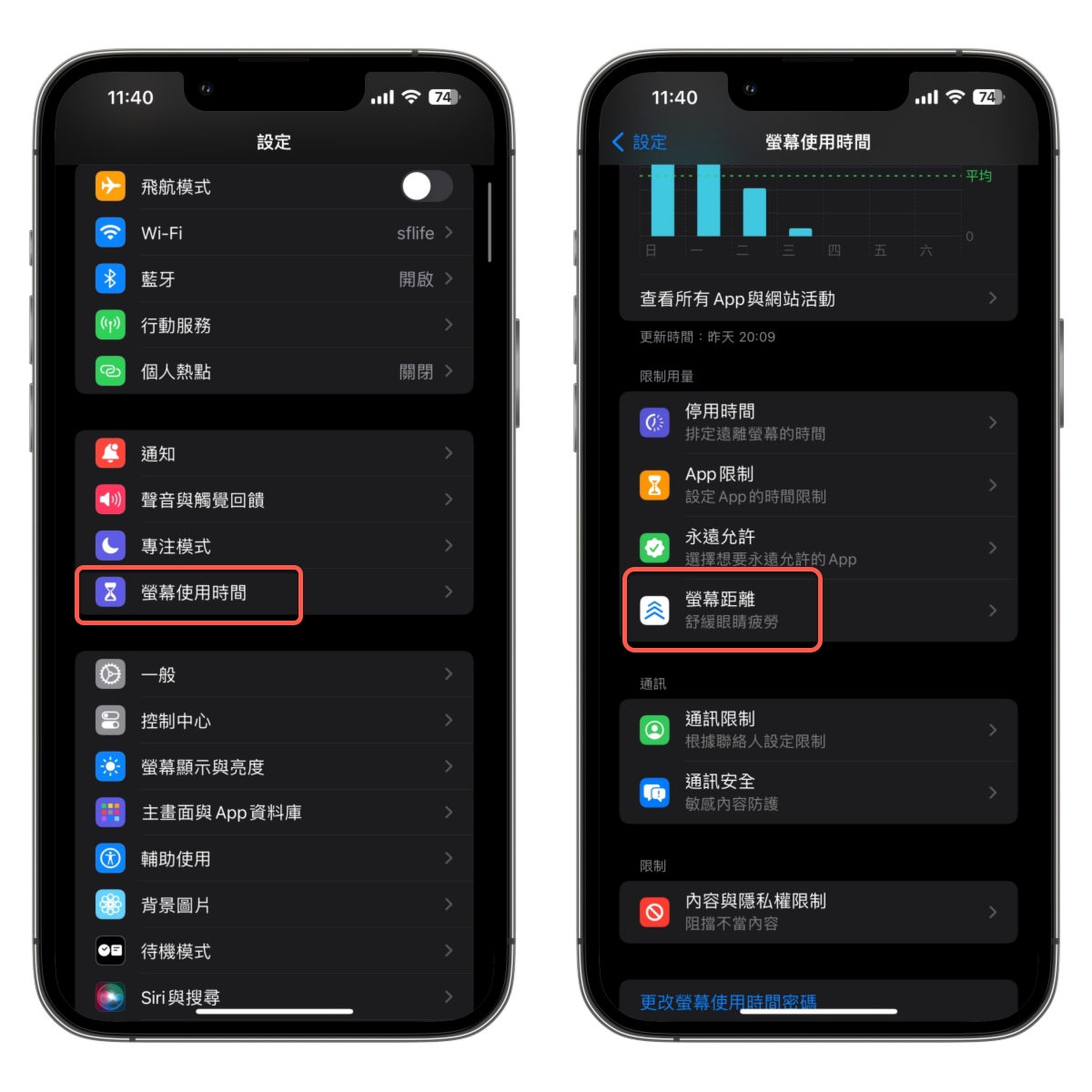 首先第一個我覺得有常態在使用手機或是有給小朋友使用手機的必開,在設定 > 螢幕使用時間 > 螢幕距離。