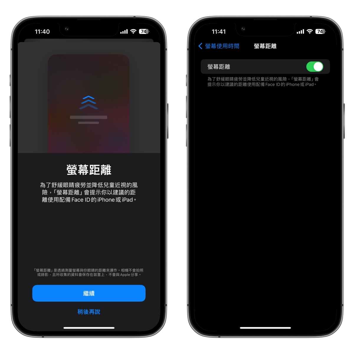螢幕使用距離提醒