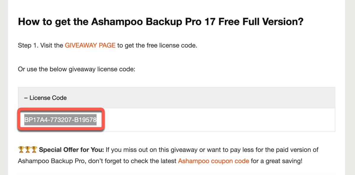 「Ashampoo Backup Pro 17」終身免費授權取得方式