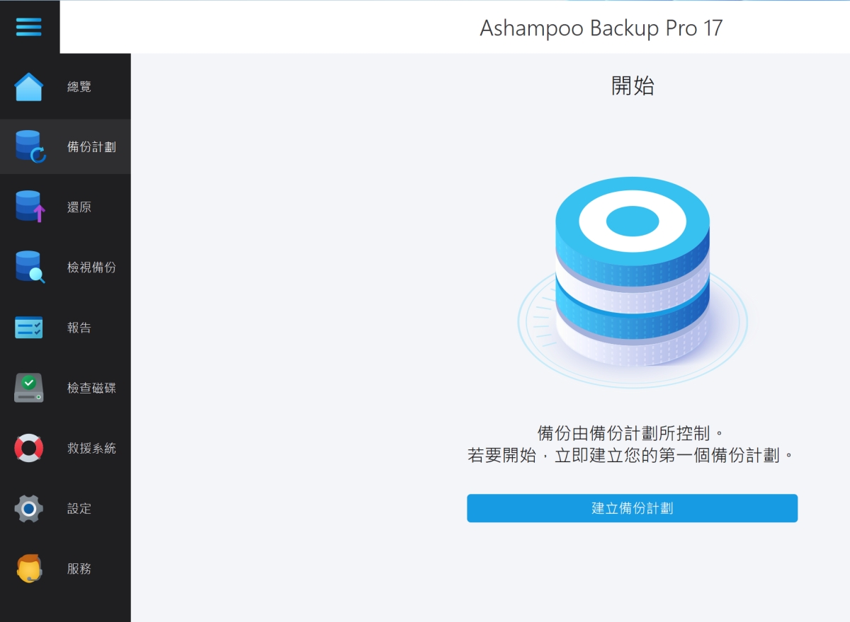 接下來正常啟用成功後,就可以開始設定備份計劃囉,Ashampoo Backup Pro 17 這款軟體最大的好處是可以將備份放到雲端去,也支援 NAS 等方式,使用也非常簡單,非常推薦大家試看看。