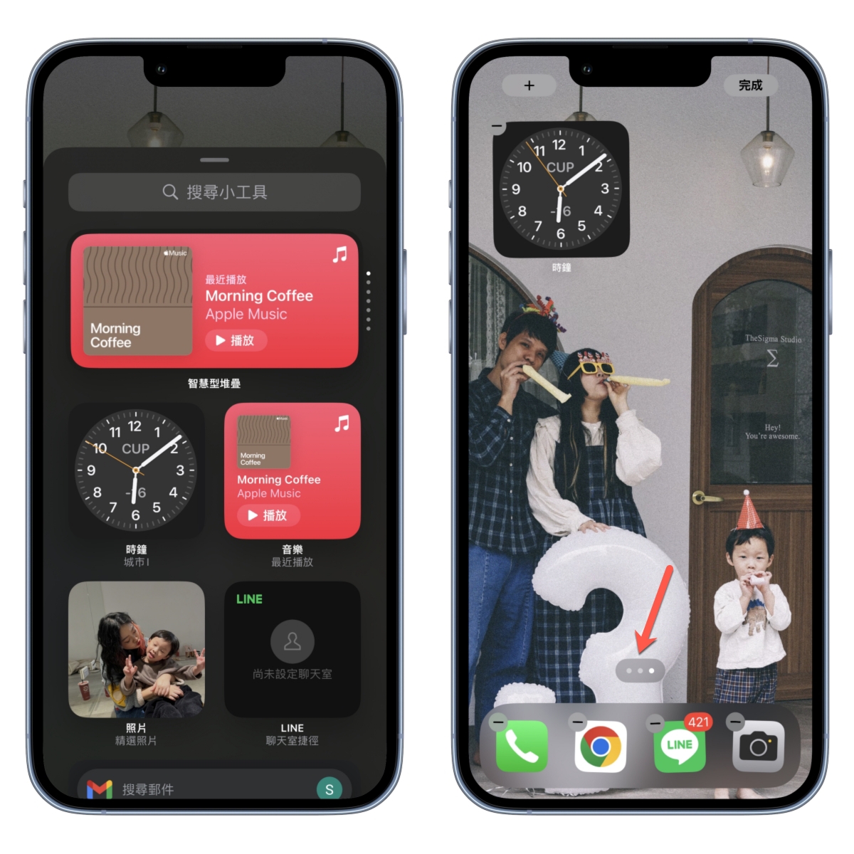 首頁 › 手機應用教學 › 如何在 iPhone 創造一頁乾淨背景的主畫面頁面? 如何在 iPhone 創造一頁乾淨背景的主畫面頁面? 發佈日期:2023/11/26 作者:阿湯 分類:手機應用教學 這其實很簡單,我也忘了我有沒教過,總之,順著新版的 iOS,也再做一次教學給大家,究竟我們想要在 iPhone 上創造出一頁乾淨背景的主畫面要怎麼做,正常來說,只要主畫面其中一頁的 App 或小工具清光時,就會消失,但我們如果想要有一頁畫面是可以看到自己設定喜愛的背景照片,那要怎麼做呢?只要幾個步驟就可以搞定哦! 在 iPhone 創造一頁乾淨背景的主畫面 首先在主畫面任一頁常按後,出現搖動畫面,點擊左上角新增。 任選一個小工具加到畫面上後,點擊下方的主畫面排序按鈕。 將剛剛新增的那頁主畫面拖曳到第一個,接下來回到主畫面後,將那小工具點擊移除。 移除後那頁主畫面就會變成空白囉,這麼一來,每次開啟手機畫面時,第一頁就會是完整的背景畫面囉。