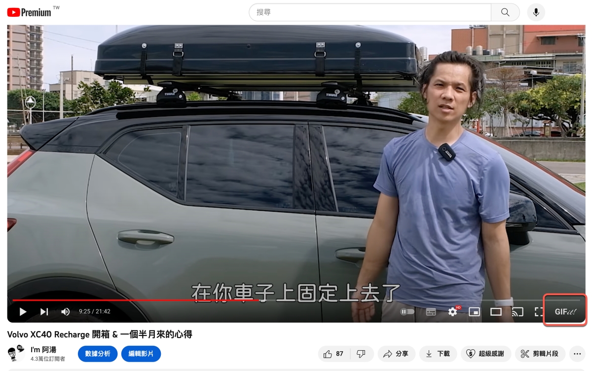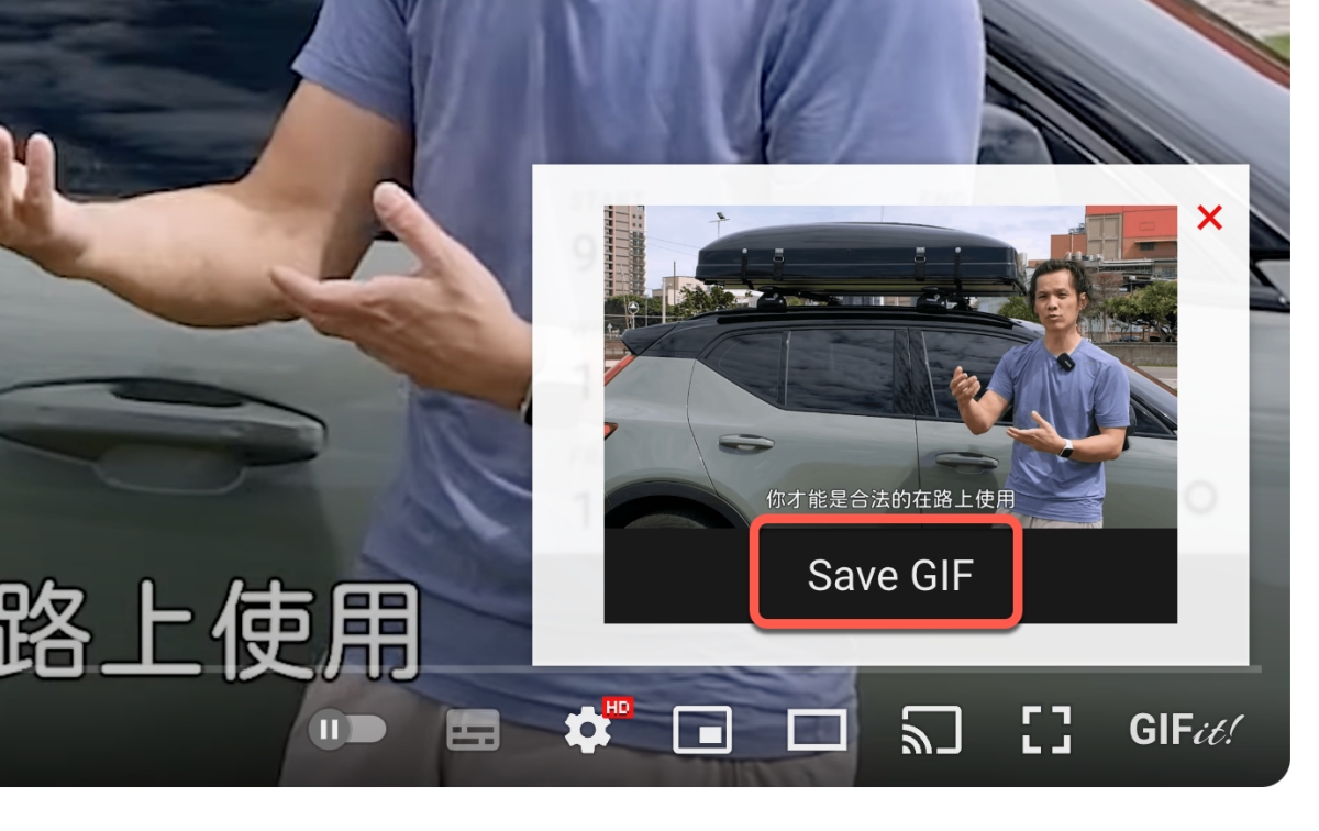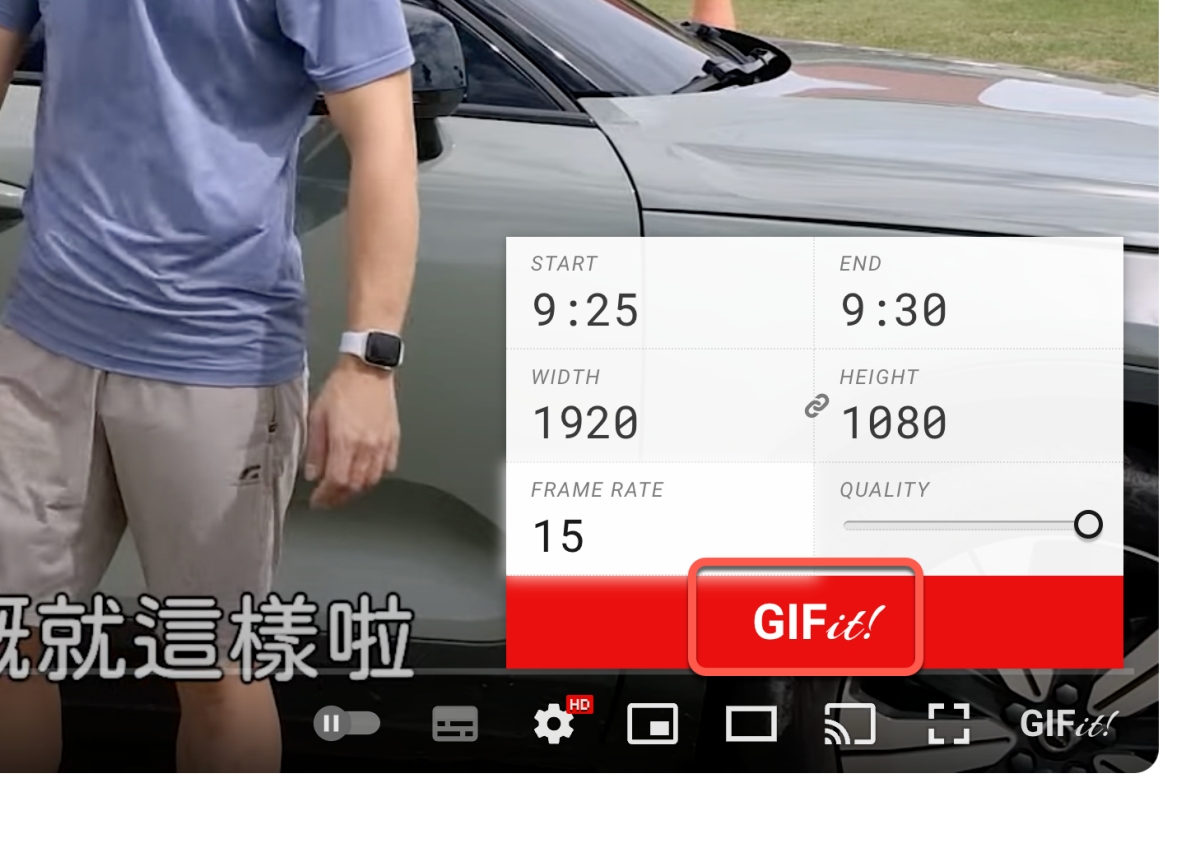隨便開一個 YouTube 網址,會看到影片右下角多了一個 GIFit!,點擊它。