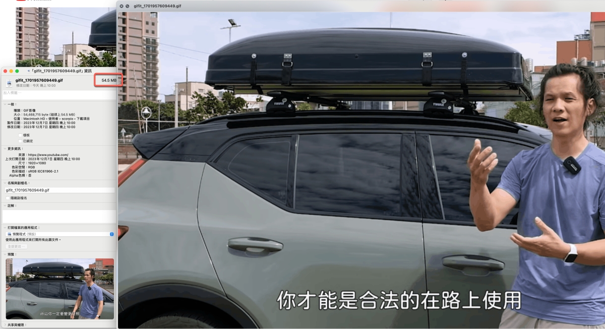 像我全都選很高解析度、高品質,短短五秒就 54.5MB,太大了,這様大家懂了吧,不要選太大。