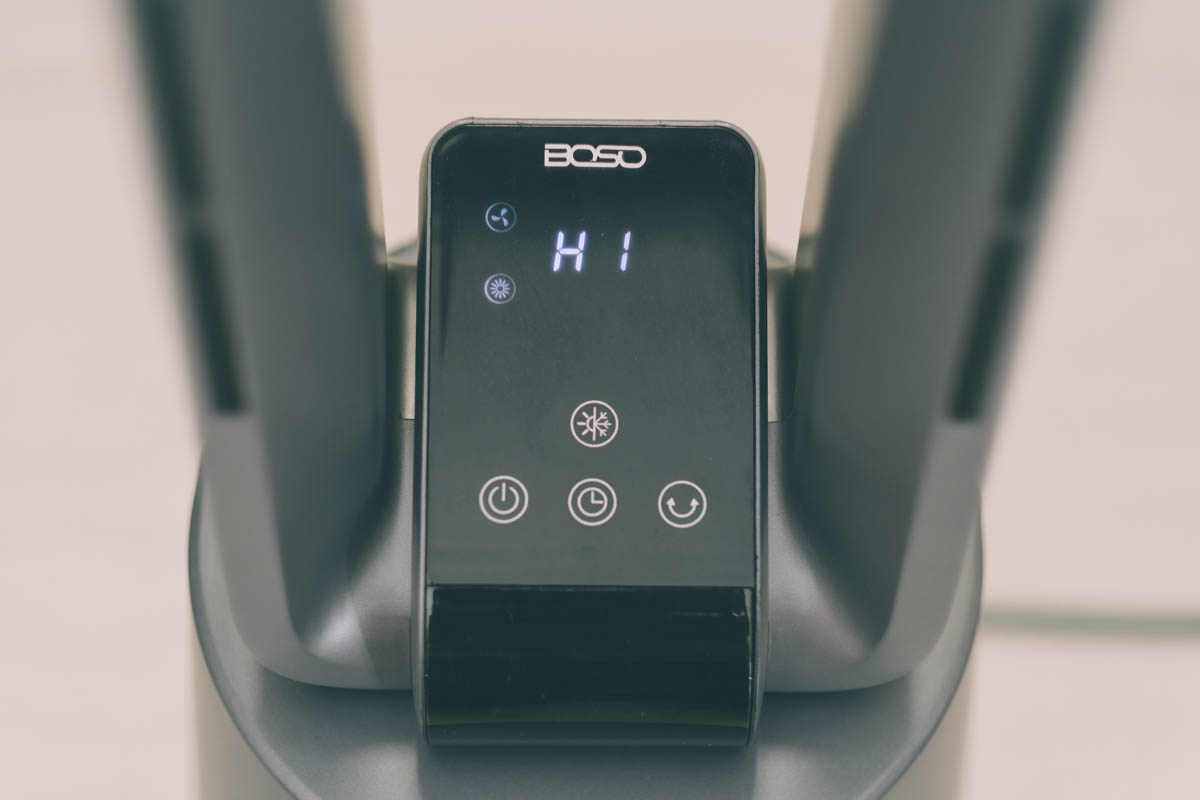 按鍵操作也設計的非常直覺,BOSO 冷暖風扇一共有二種控制方式,第一種就是直接透過主機上的觸控面板進行操作。
