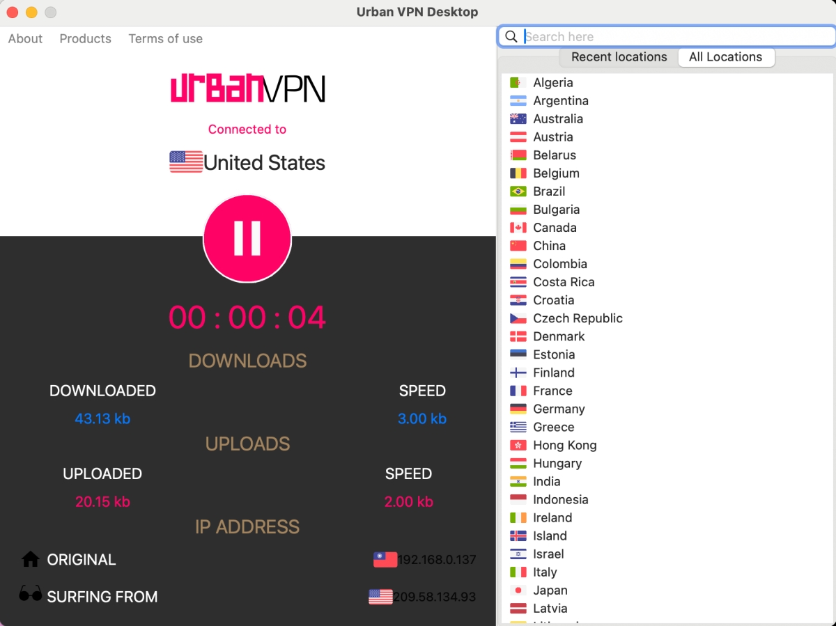 這邊我是用 URBAN 這免費的 VPN 服務,使用已經綽綽有餘。