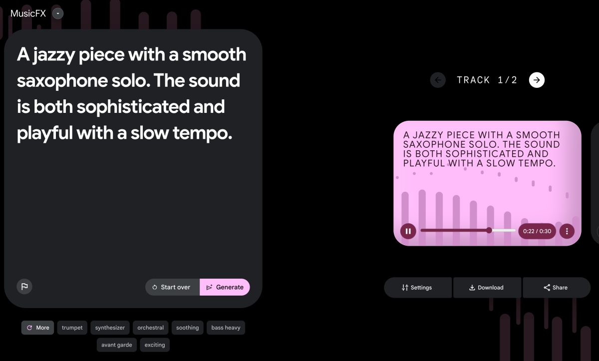 AI 音樂製作工具 MusicFX