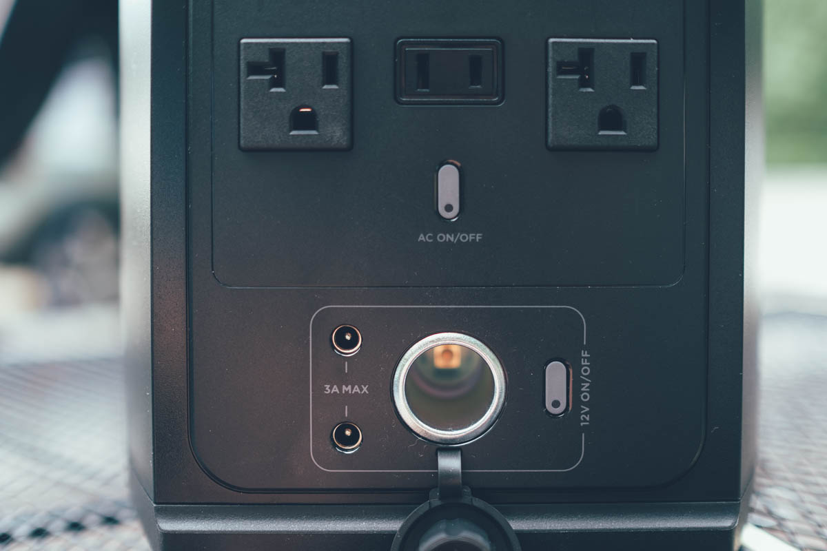 最下方還有一個小區域是 DC 輸出幾及車充孔,DC 算比較少用到,而車充支援 12/24V,有車充輸出的話,你也可以將車上原本有在使用的小電器拿下來用,比如像是車用小冰箱。