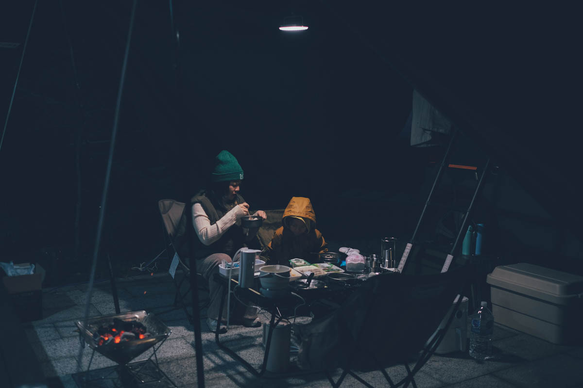 先吃吃火鍋暖暖身子,我們在這個週末露營運氣也真的蠻好的,因為整週寒流原本入夜都在 10 度左右,到這週末入夜還有 15 度,真的舒適太多了。