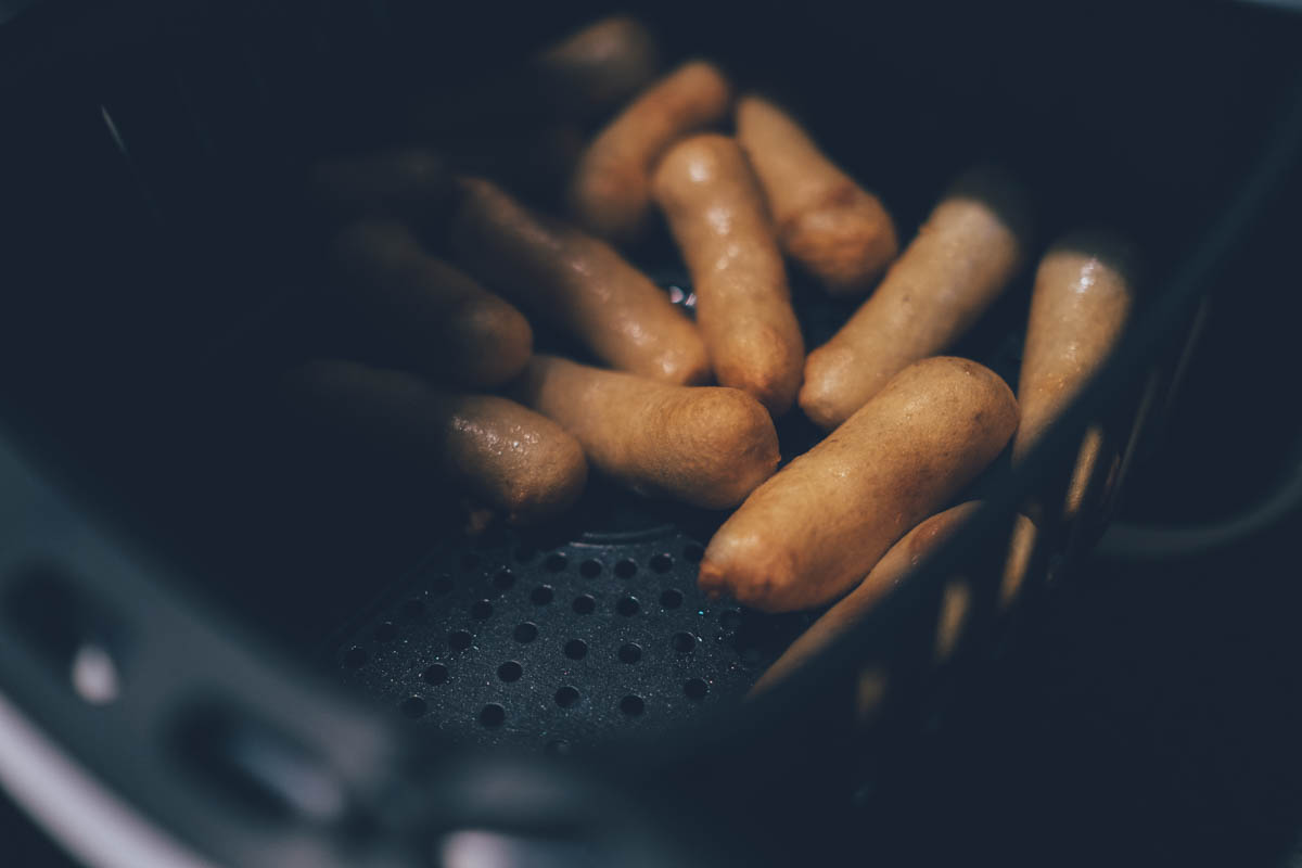 再來就要出動這營區用電殺的氣炸鍋了,當然我不可能把氣炸鍋接到營區的用電上啦,肯定會跳電,這功率會到 1800W 左右,帶他我只為了一道菜,哈哈哈,就是炸甜不辣!!