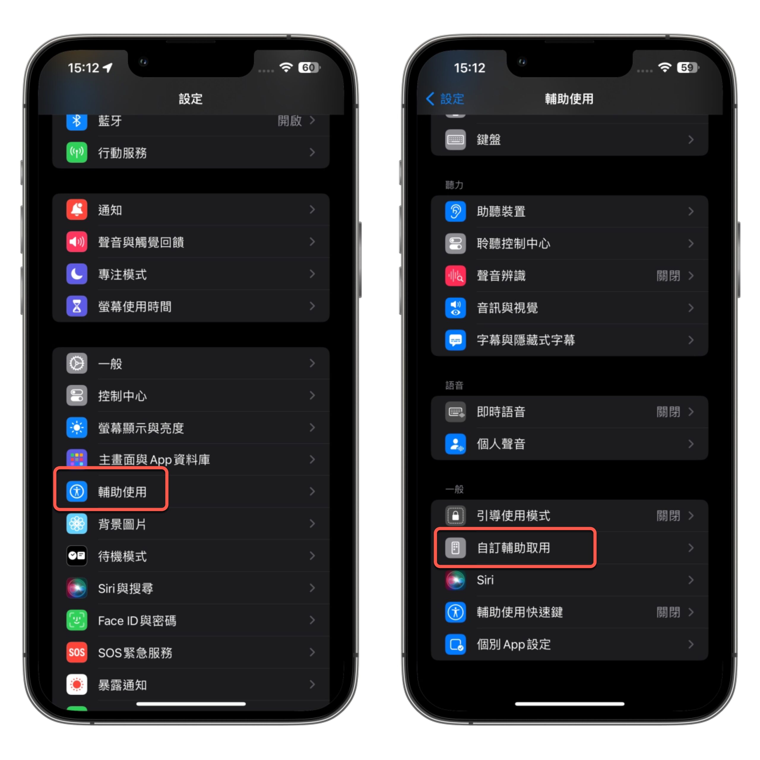 進到「設定」找到「輔助使用」,進入後拉到最下方有個「自訂輔助使用」。