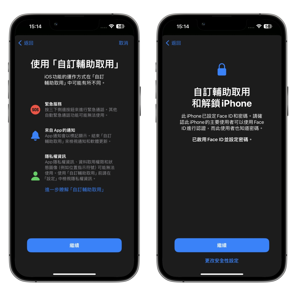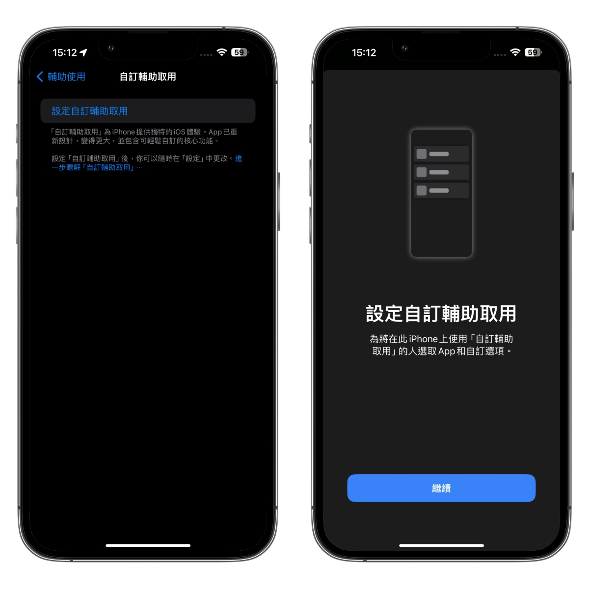 第一次使用會出現這畫面,點擊「設定自訂輔助取用」,然後點擊繼續。