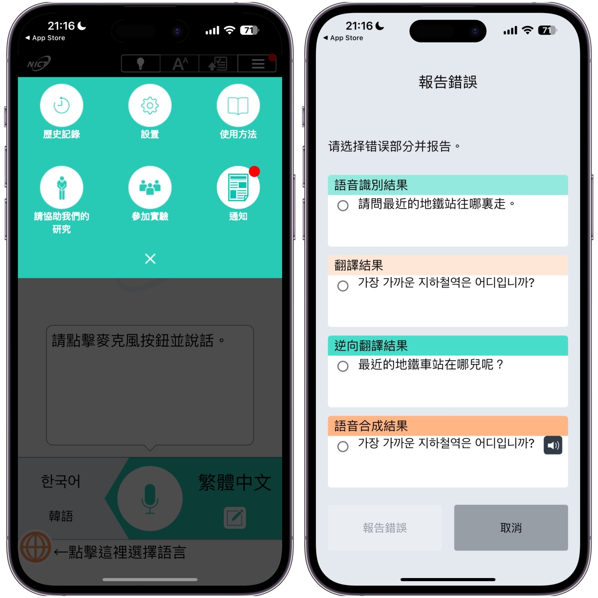 另外在這 App 裡還有錯誤回報機制,如果你發現翻譯的結果有問題可以透過回報機制來告訴官方進行修正,透過修正機制也能讓翻譯的結果更加準確。