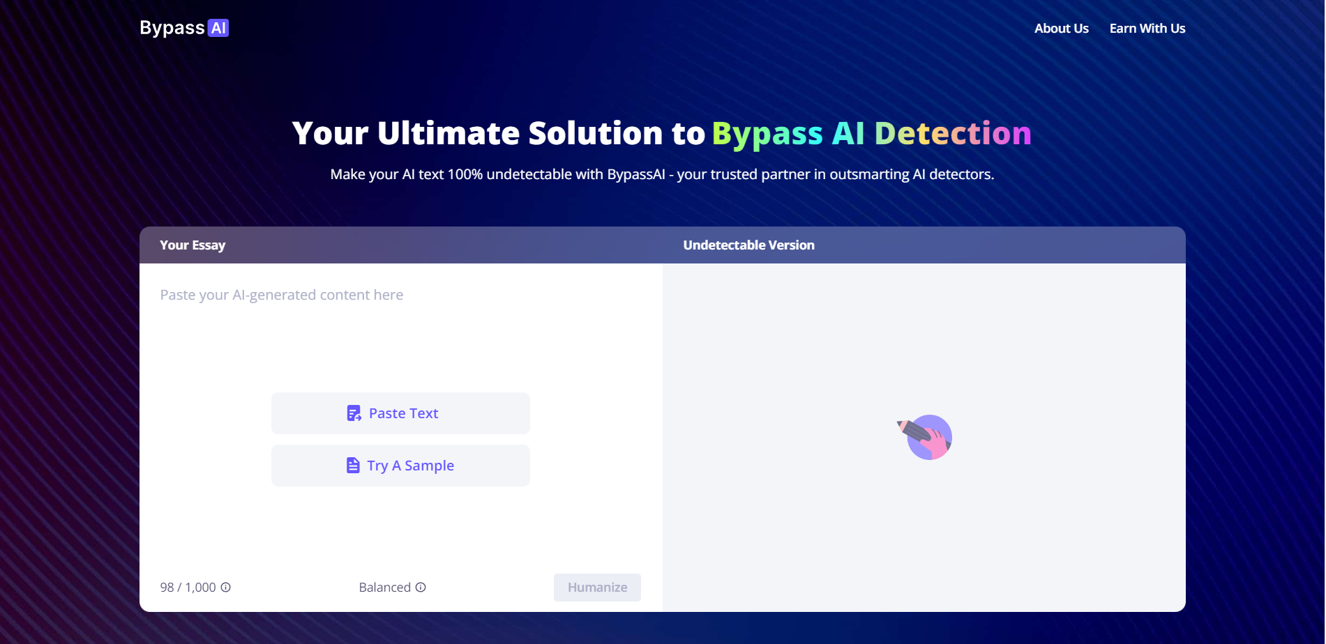 Bypass AI 可透過其智慧文字人性化演算法解決了這個問題。它還使用了多種技術,包括改變句子結構和用同義字替換常用單字,為 AI 寫作增添更多變化。