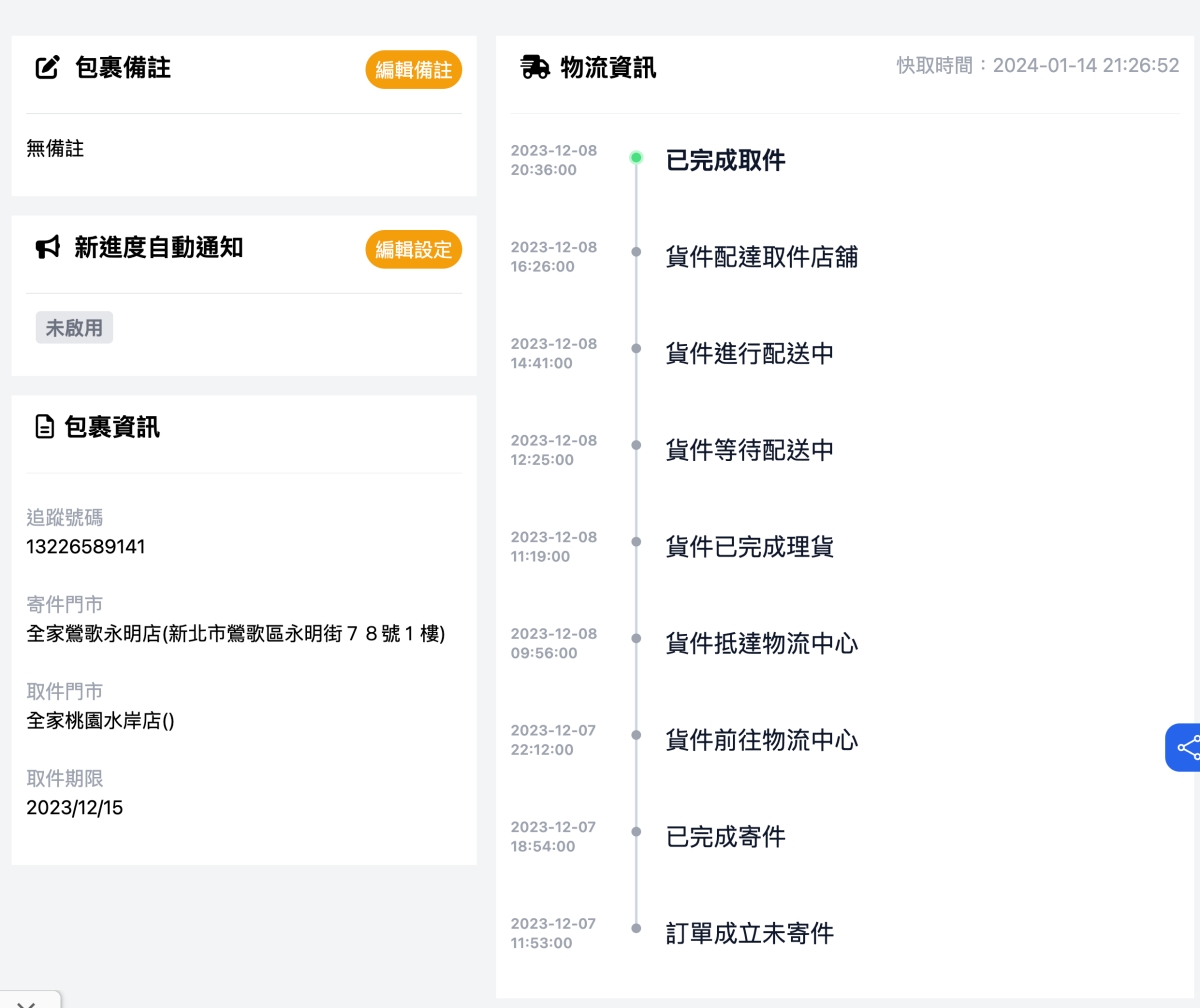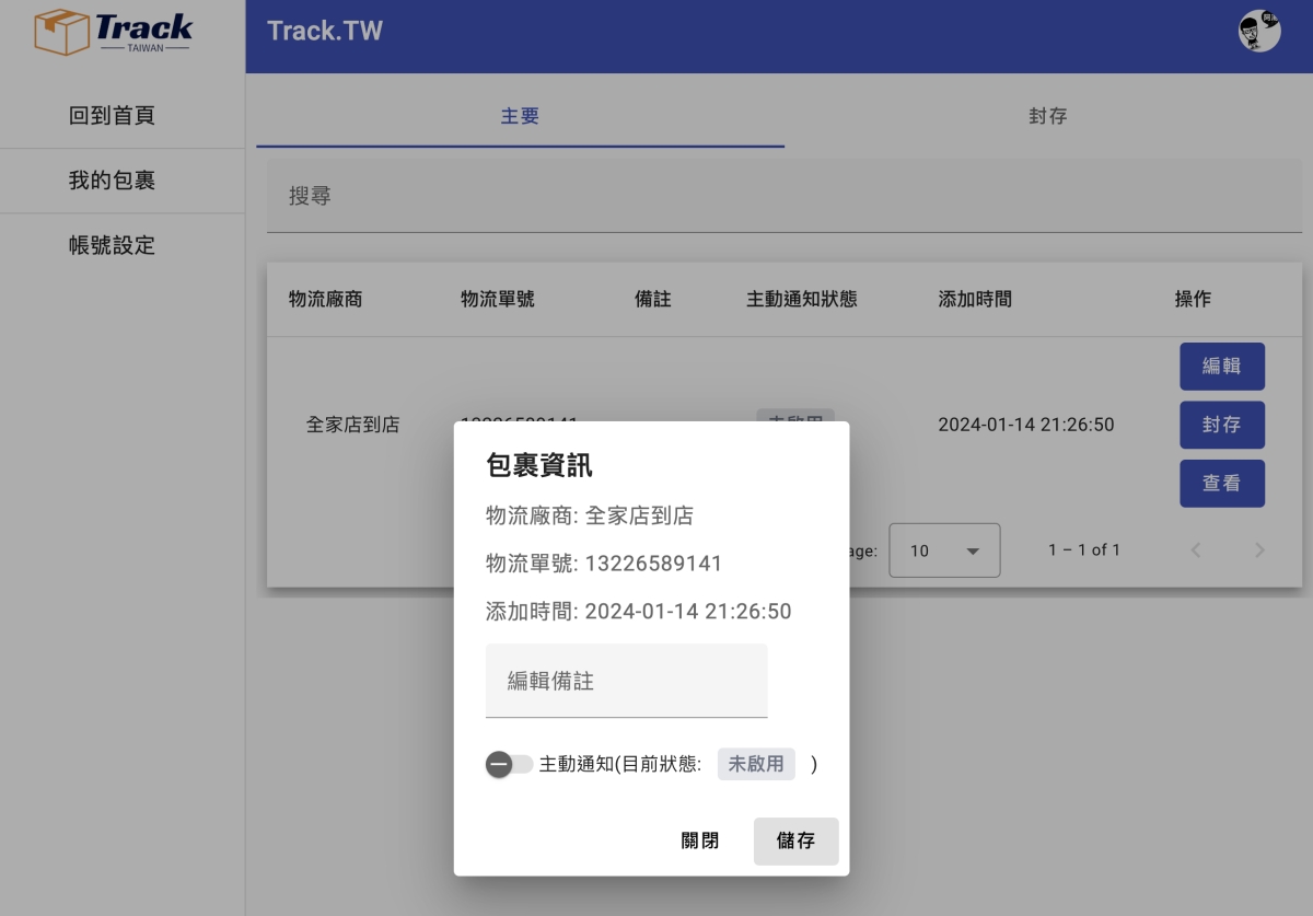 在你的後台裡也可以統一查看所有追蹤的包裏,這整合對很常線上購物的人來說相當重要,也很方便。