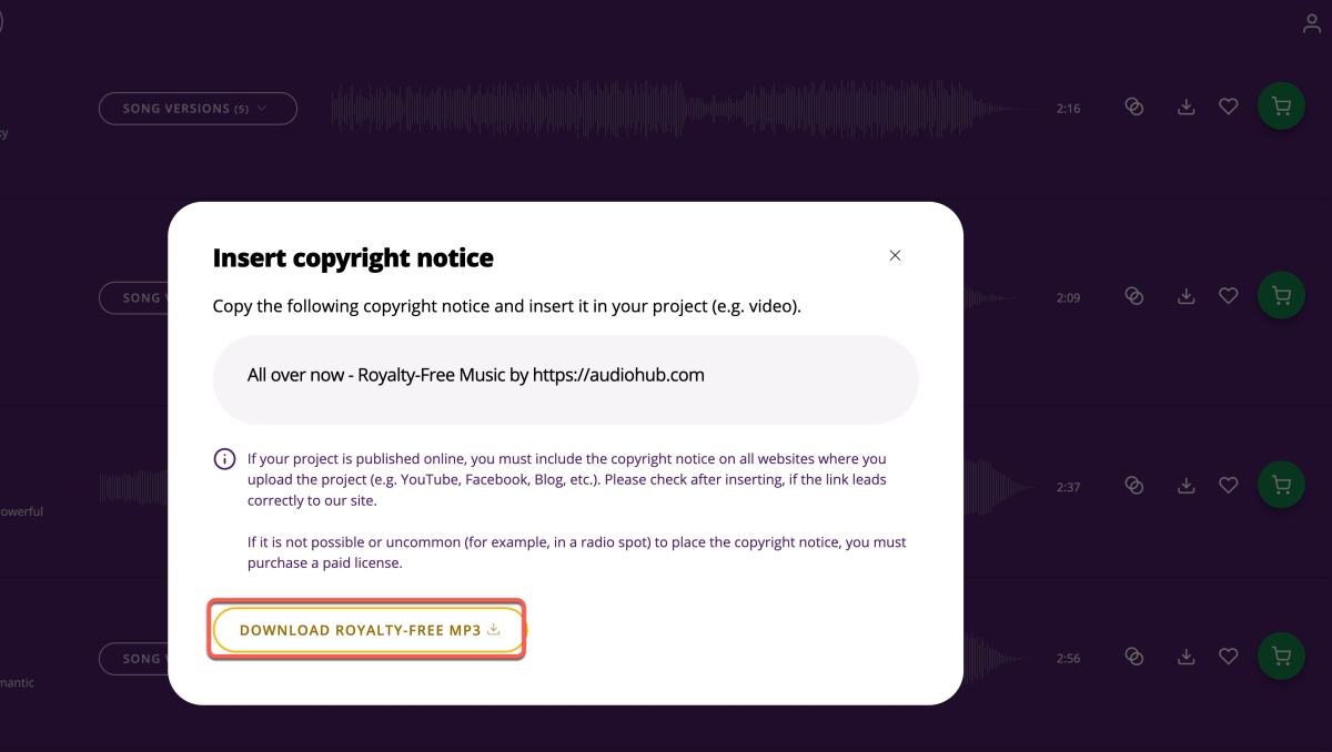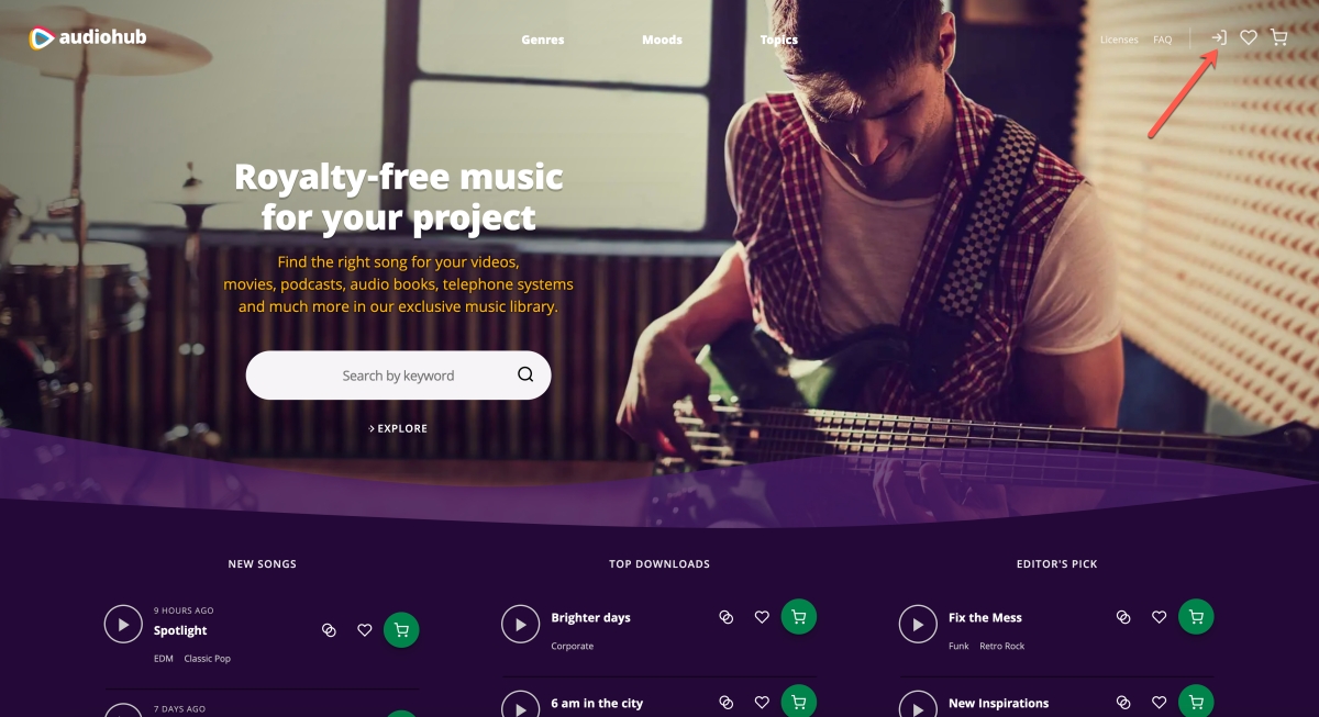 或直接點這裡:https://audiohub.com/free-royalty-free-music