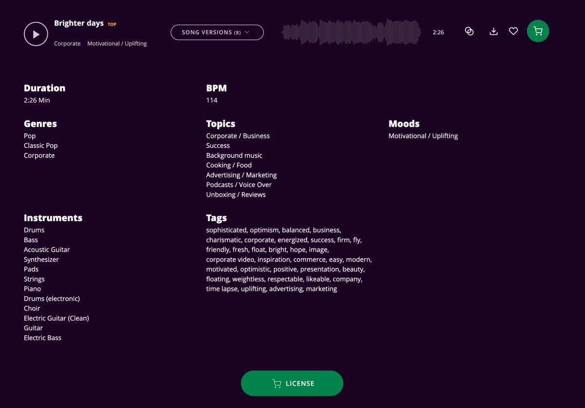 先大概講一下,Audiohub 並不是完全免費,還是有一定的收費機制,比如你想要擁有完整授權的檔案使用權,會採用扣點的方式,而我今天主要要介紹的是在 Audiohub 裡還有一區是真正完全免費的音樂素材,大約有 200 首以上,完何以用在個人或商業用途,如果常在剪影片的人想要找配樂的,不妨來試看看這個網站,音樂都還蠻不錯的哦。