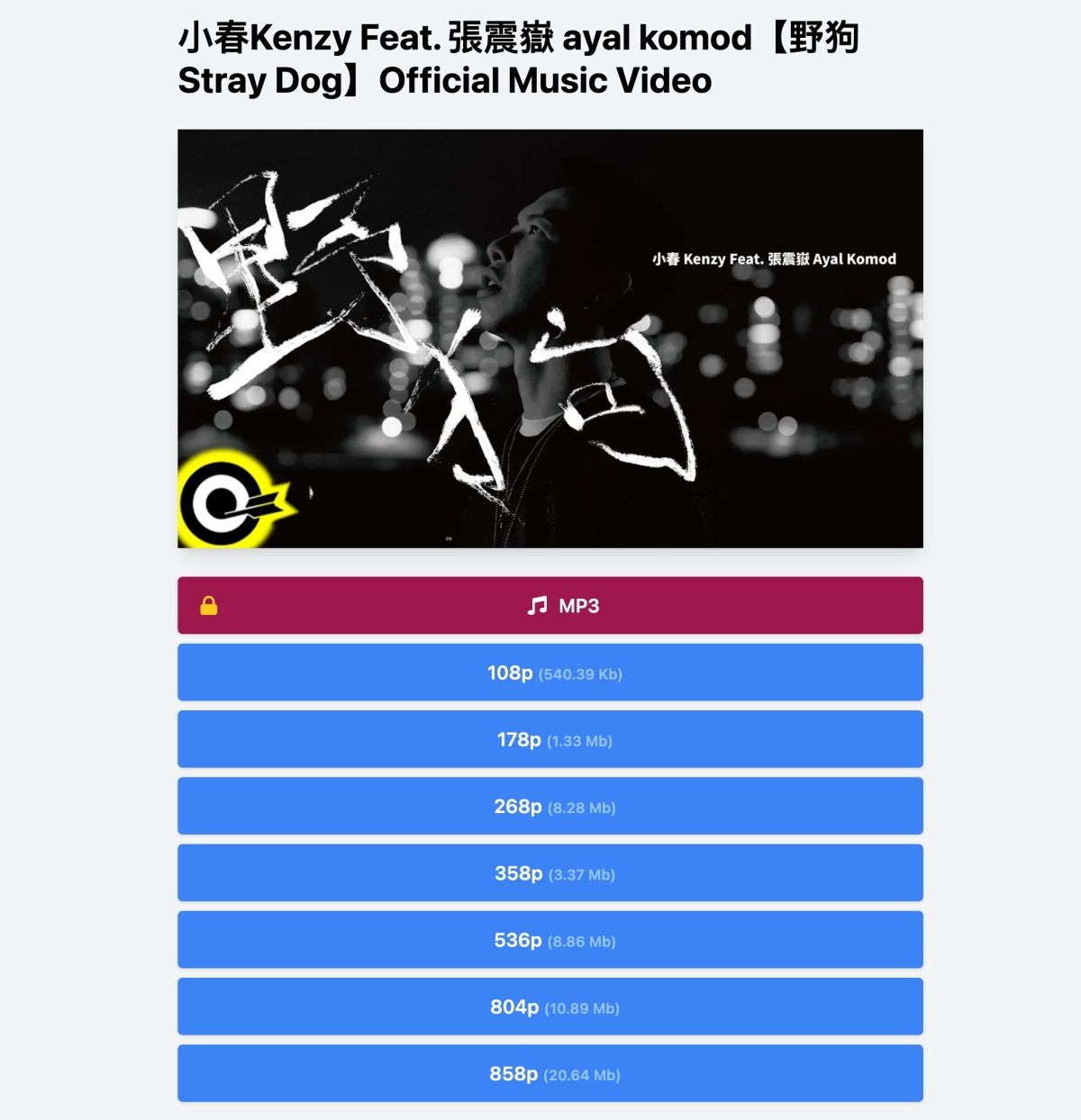 比如像這個 MV 就只給我 858p 也是很神奇,但有些我是有試到能下載 1080p 的檔案的。