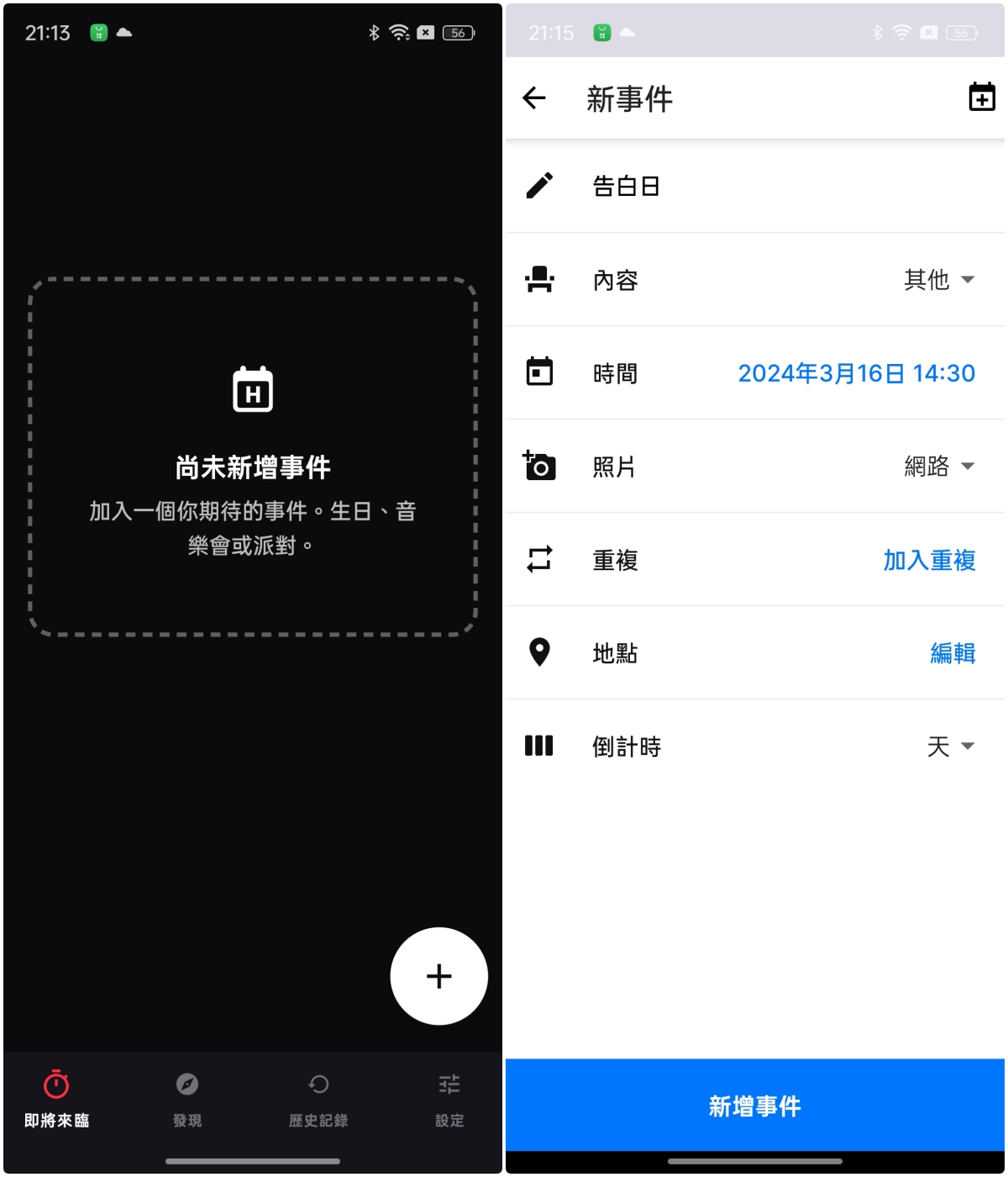 使用很簡單,按下新增事件後,就可以設定事件名稱、日期等。