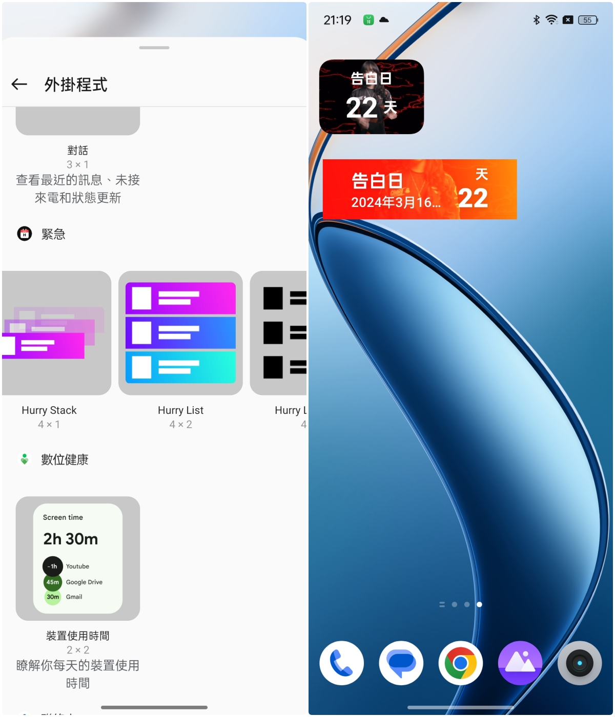 至於要放到桌面上的話,有各種 2x1 跟 4x1 的尺寸可以選擇,如果你有多個倒計時的內容,還可以放上 4x2 的小工具,畢竟手機每天起床就拿看,如果在第一個畫面放上倒計時提醒重要日子,應該是絕對不會錯過的吧。