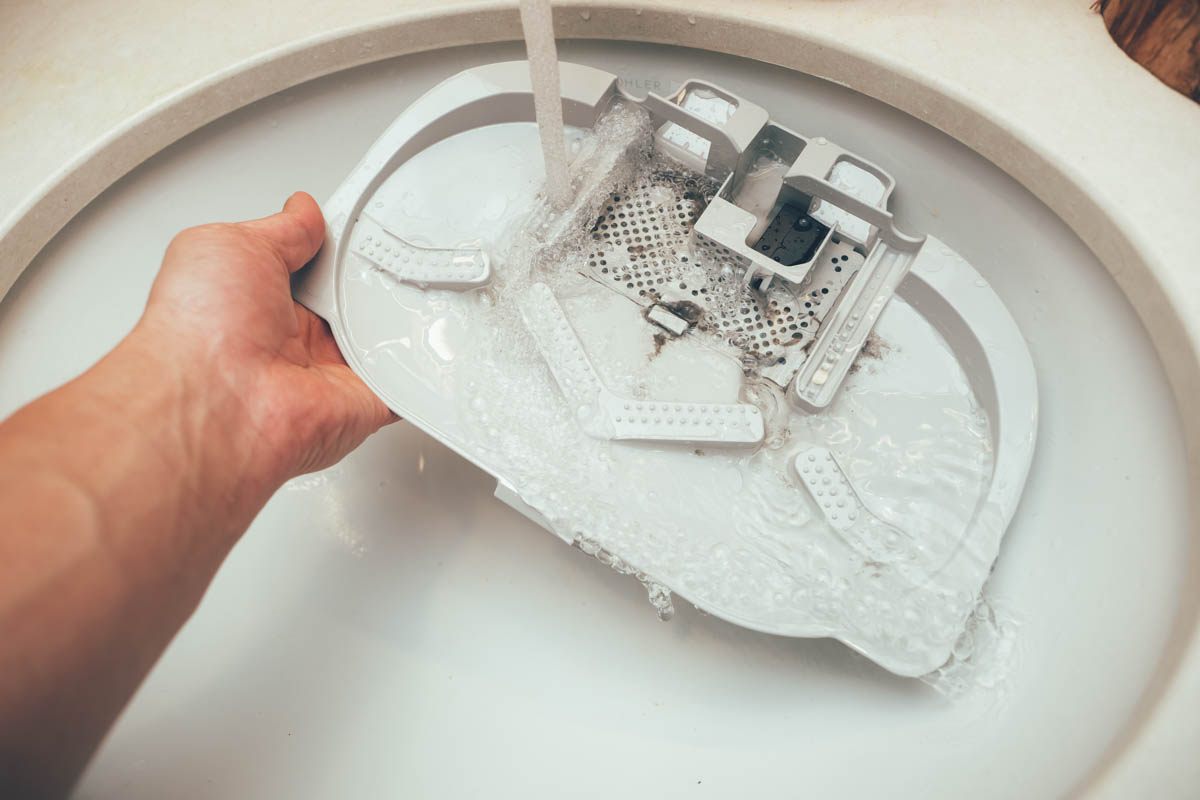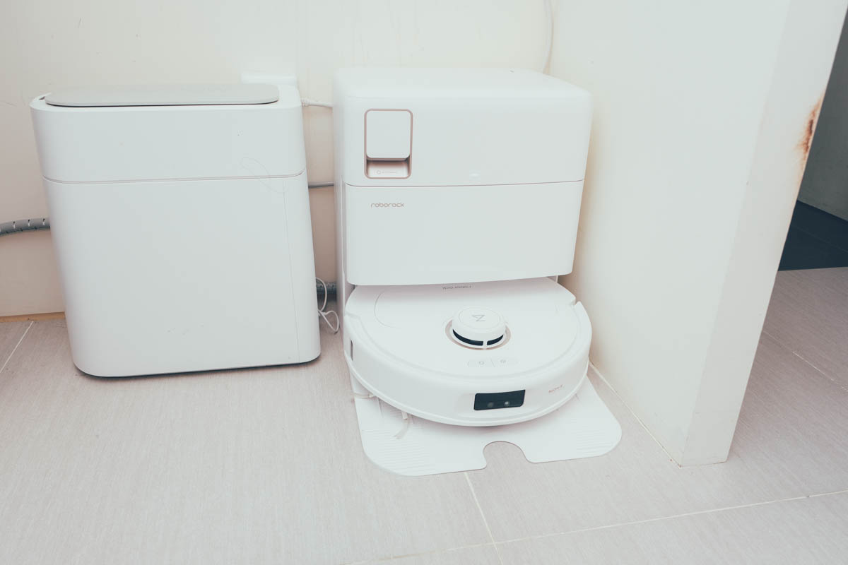 下方包括了充電區、集塵、自清洗、烘乾,至於這抹布洗的乾淨嗎?只能説除非你去拖那種會染上色超級髒的,否則基本上都能洗的蠻乾淨的,油汙的部份有 60 度熱水的加持下完全沒有問題,基本的油汙殘留都能洗掉,我自己使用自動上下水的機種以來已經將近一年(S8 Pro Ultra),我大概只自己洗過 2 次抹布,也不是因為真的髒,只是覺得應該洗一下吧?認真來說每次清洗完就有熱烘乾,抹布真的沒有味道也很乾淨,大家真的可以放寬心使用。