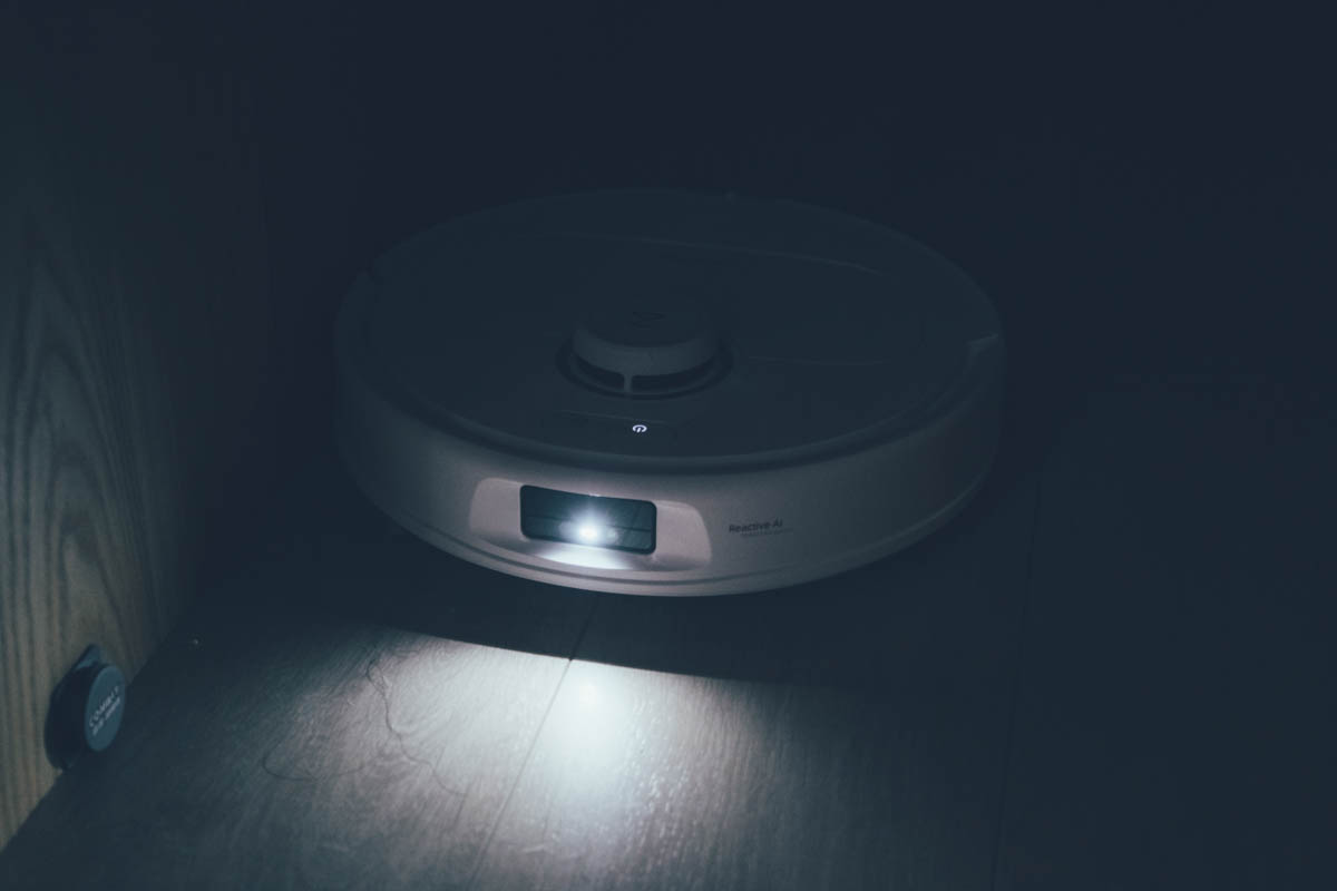 當夜間清掃時,就我自己的經驗,從幾年前有視覺避障系統開始,只要遇到暗處,辨識失敗率非常高,主要是因為沒有補光,對於物品的辨識還是不夠好,而 Q Revo MaxV 加入了補光來強化,基本上就沒有這問題了。