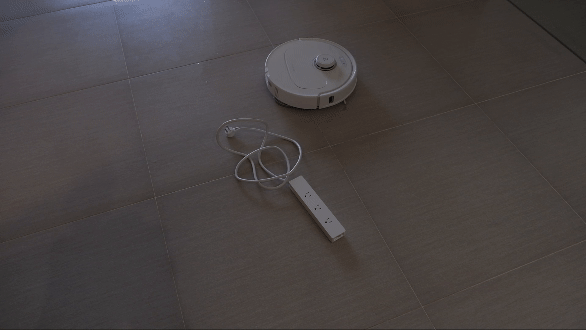我自己隨意的放了幾樣東西,包括拖鞋、玩具、延長線,其實類似的實驗我已經做了非常多次,已經不太需要懷疑它的避障能力,假設測試十次好了,我也會誠實的告訴大家,十次大約 8 次都會完美不碰撞,可能會有 1~2 次碰到,但是非常輕的碰到,目前也應該沒有半台是真正可以 100% 無碰撞的避開所有障礙物,就現況來說避障率也至少 99% 以上是不會直接硬撞上去的。