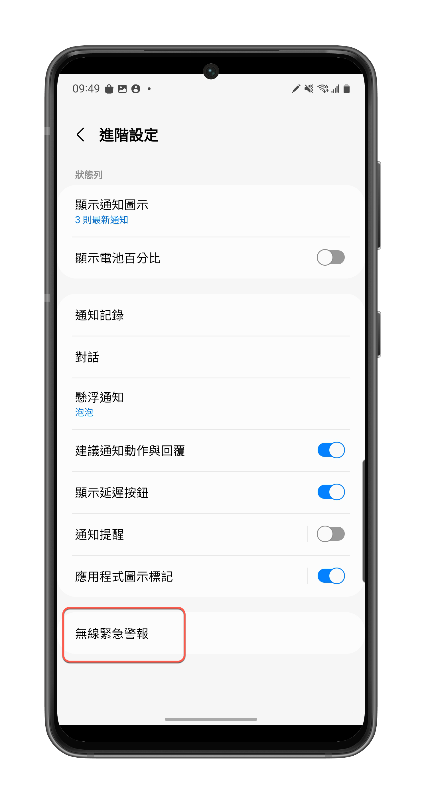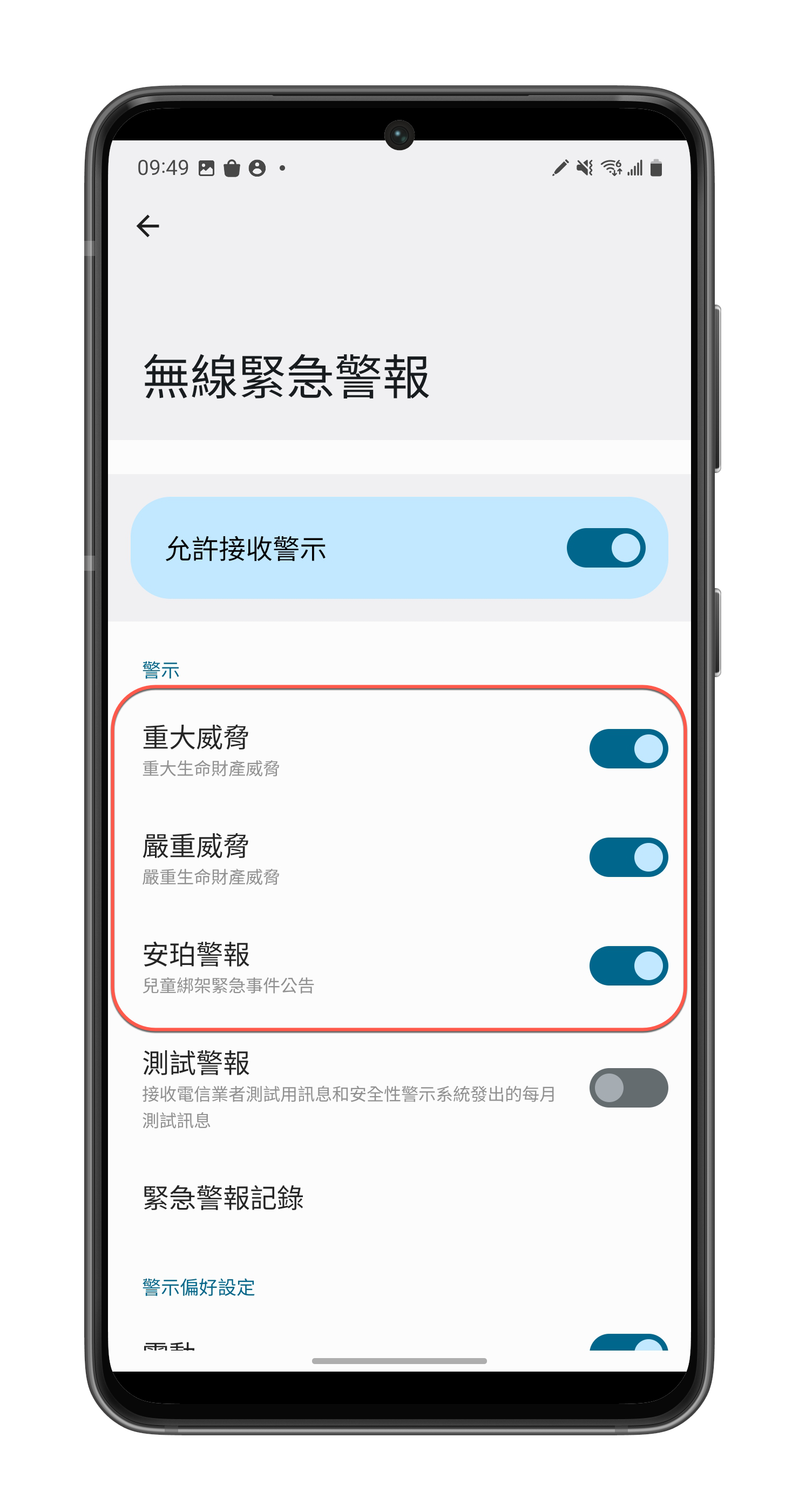 往下找會看到一個「無線緊急警報」。