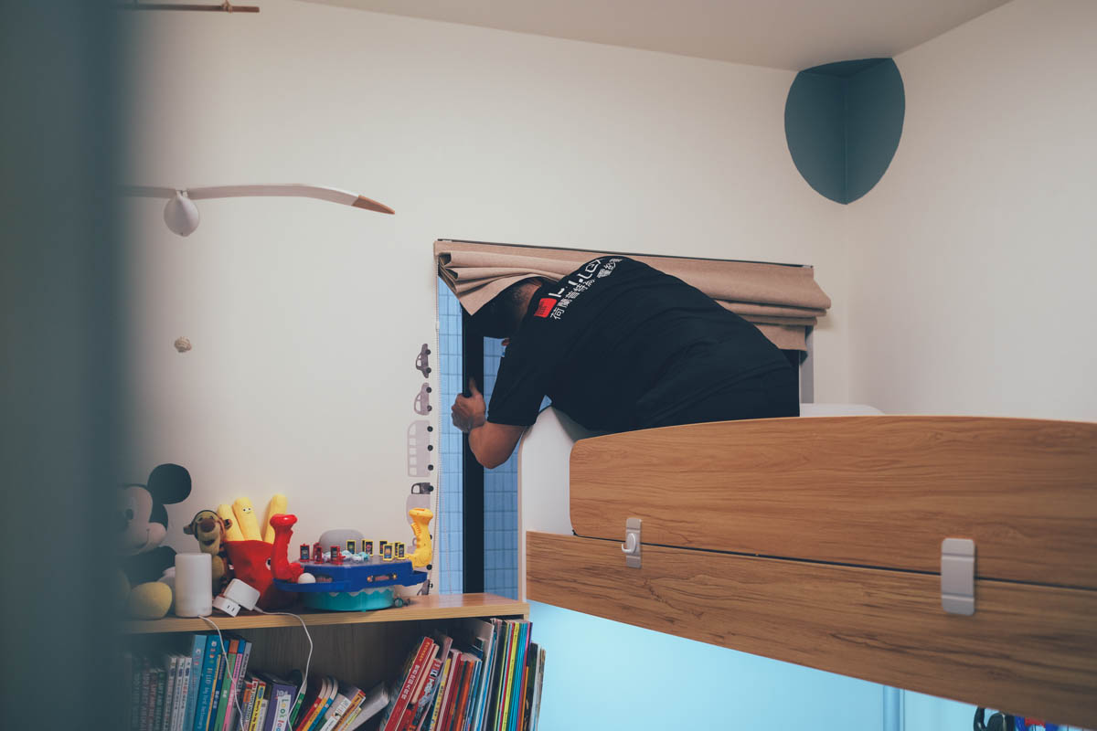 不得不説,因為我兒的雙層床擋住了窗戶,這邊真的是最難處理的,真是辛苦施工人員了。