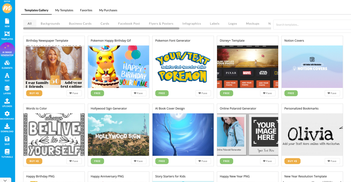 MockoFUN 這個免費的設計網站,裡面包括很多免費的範本(也有付費的),可以讓我們直接套用修改,輕鬆的製作出有質感的海報設計或是像卡片製作等,而且使用很簡單,還支援 AI 繪圖,像這類的
